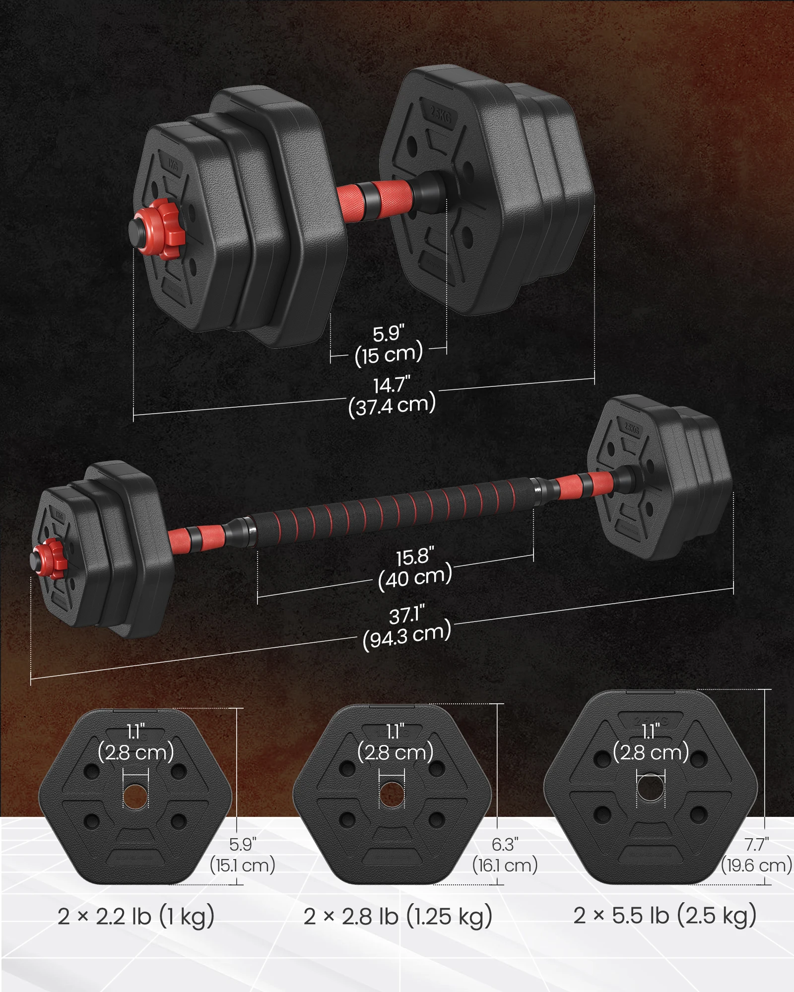All-in-One Training: Transforms in seconds from dumbbells to barbell or press-up handles—adaptable for all training needs. The hexagonal shape prevents rolling for safe, stable workouts