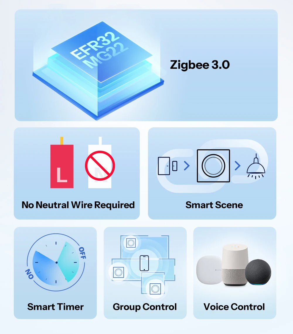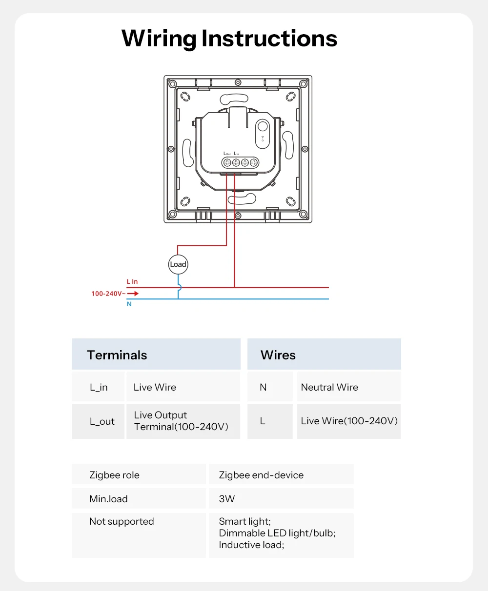 - Product type: Zigbee smart wall switch (No neutral required)
