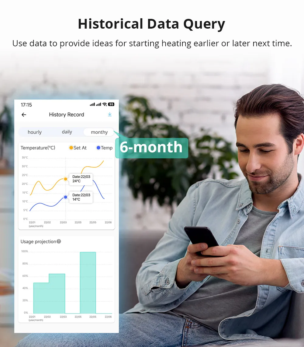 【Complete Functional】Child lock prevents children from mishandling the radiator. Frost protection makes sure pipes don’t freeze and burst, keeping your home safe. Support 6 months of historical data query, you can use data to provide ideas for starting heating earlier or later next time.