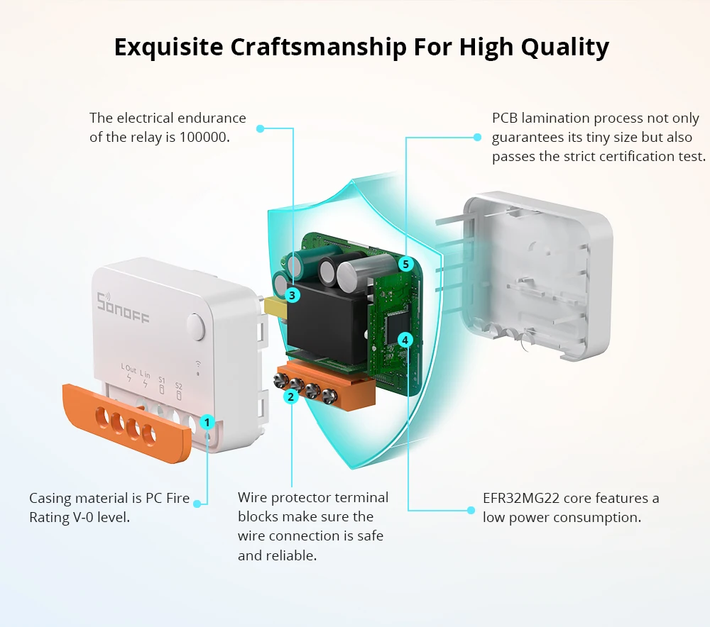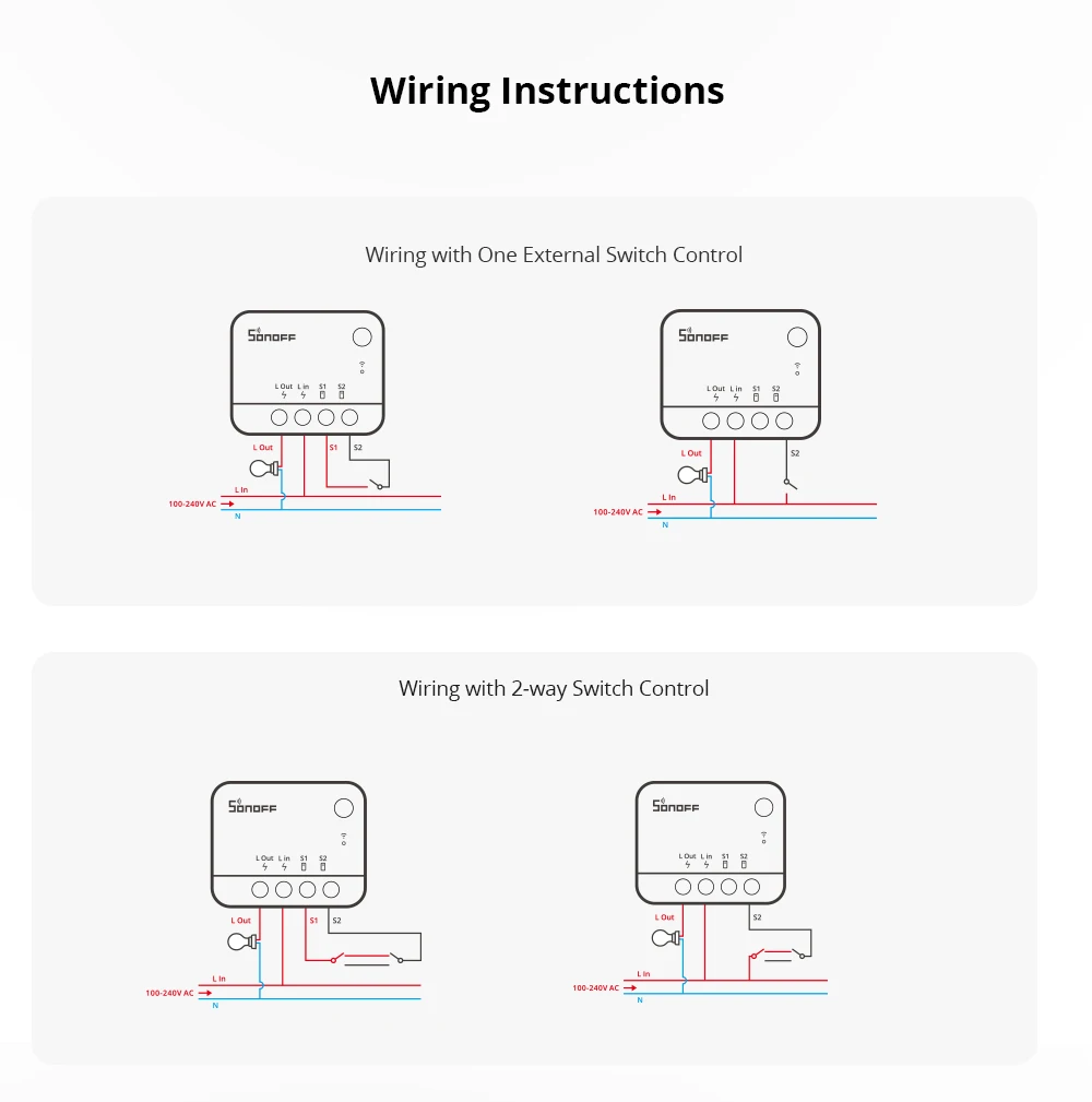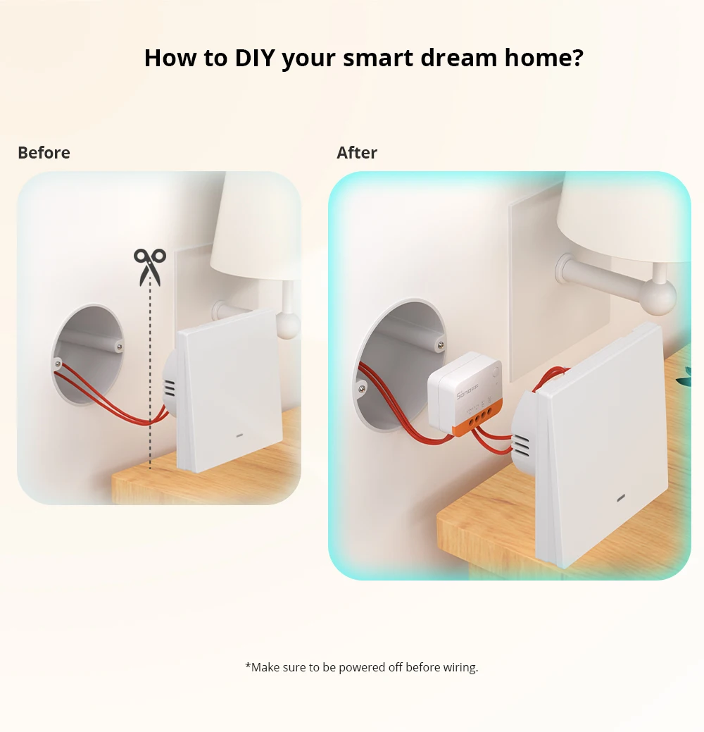 SONOFF ZBMINIL2 is 40% smaller than ZBMINIL, which will make it take up less space in the mounting box, suitable for most size boxes, and leave more space for DIY modification. Although ZBMINIL2 is smaller, it has many functions, no neutral wire required, two-way control, smart timer/ scene, supports two types of wall switch,etc