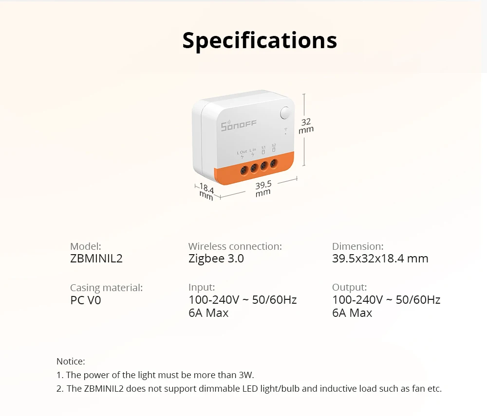 【Simple and Reliable】As a Zigbee 3.0 switch, ZBMINIL2 can combine with Zigbee hubs to form a home LAN,No longer worry about no internet, you are able to freely control the appliances normally even the light is as low as 3W, no anti-flicker module is required.