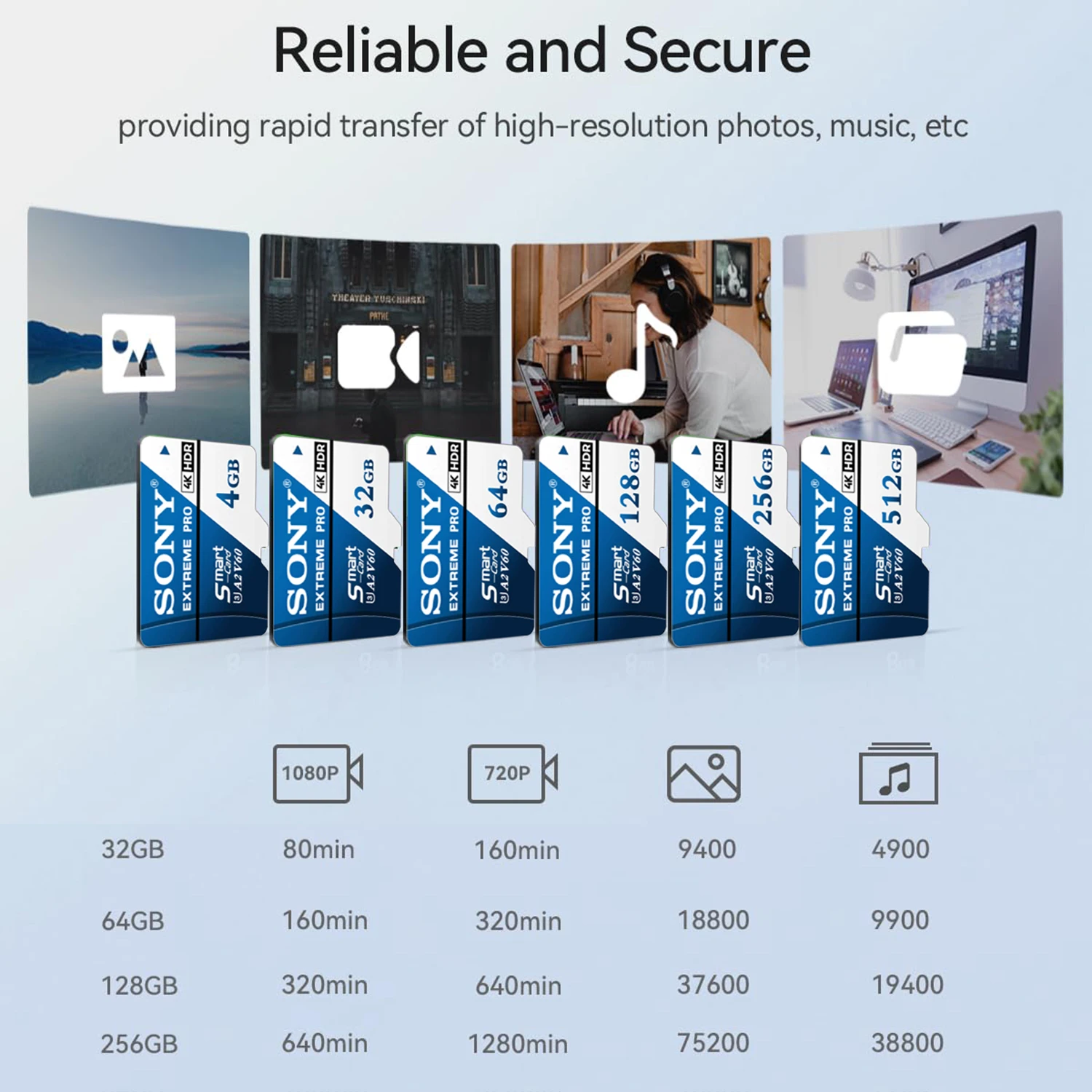 SONY Extreme Pro Micro TF SD Card 512GB High Speed SD Memory Card 128GB 256GB U3 V30 4K Full HD Flash Cards For Xiaomi Phone PC