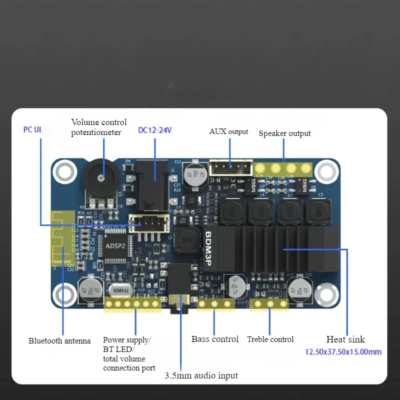 4.Support total volume/treble/bass potentiometer interface