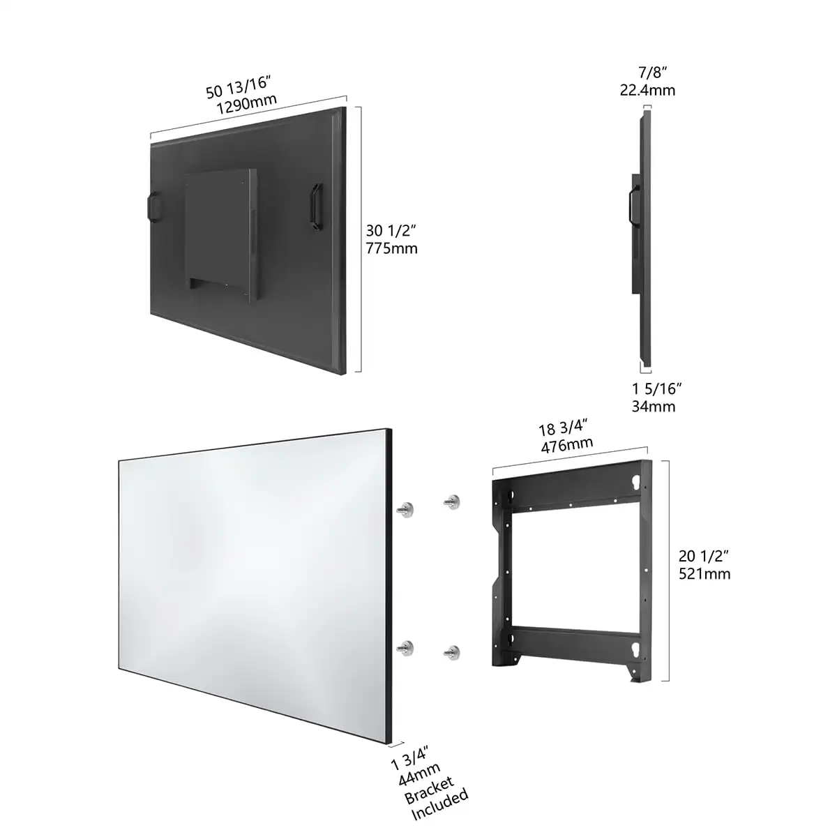 • TV Size: 1290W × 775H × 45D mm (50.8”W × 30.5”H × 1.8”D)