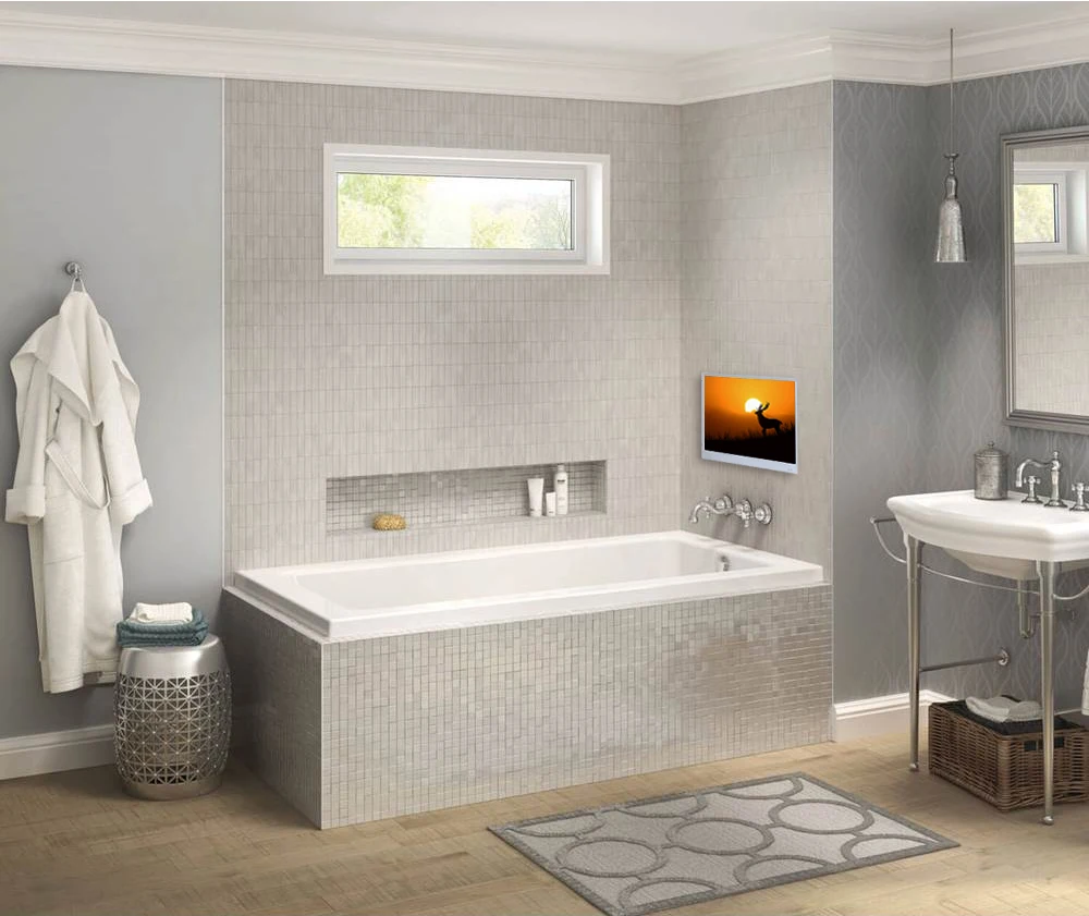 The waterproof TV is a completely sealed design, engineered for use in wet areas. It is rated IP65 or higher and can withstand not only moisture, but also water from any direction.