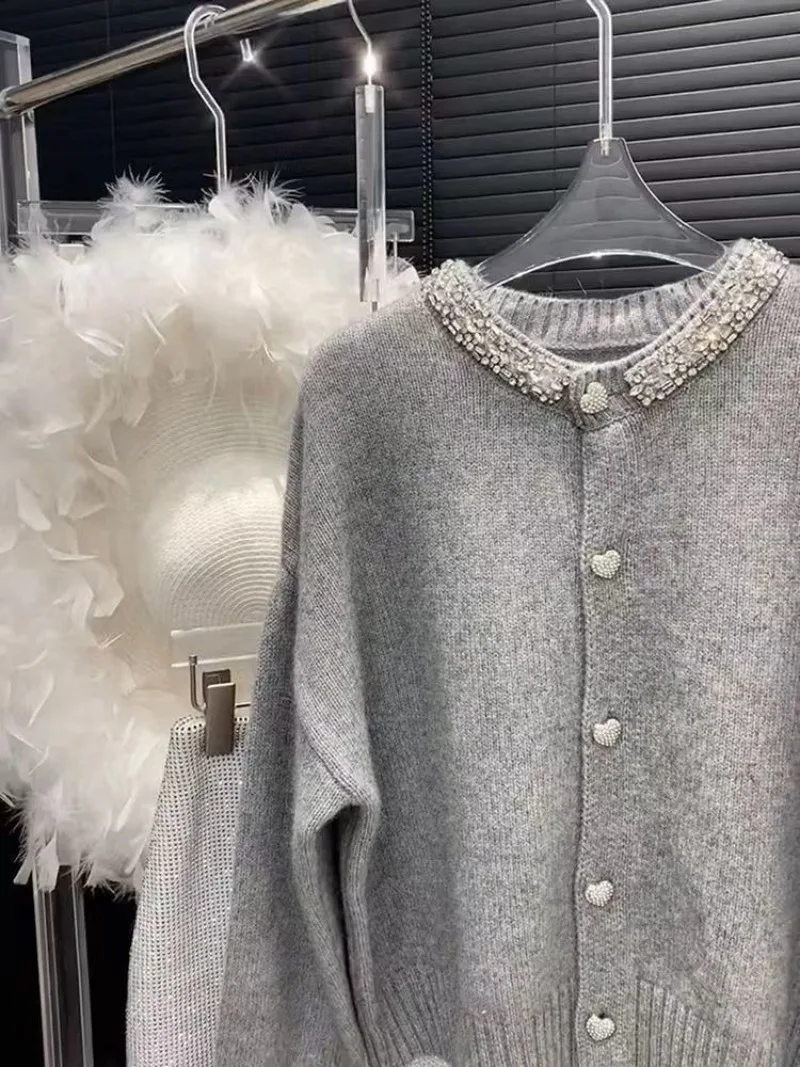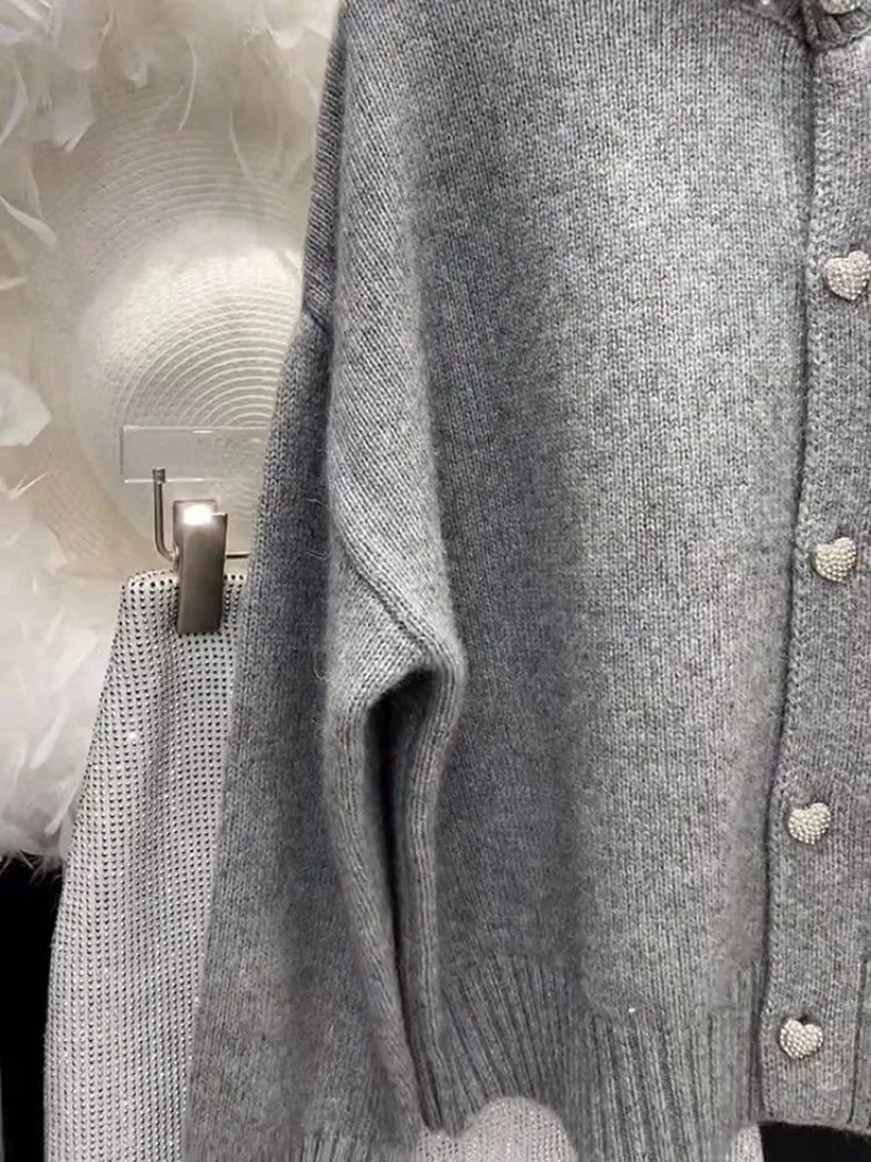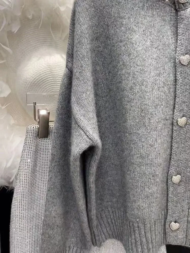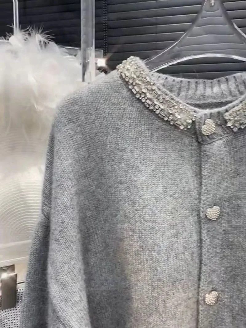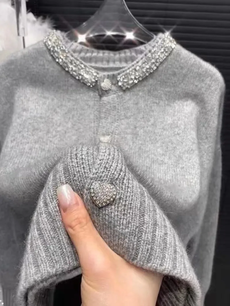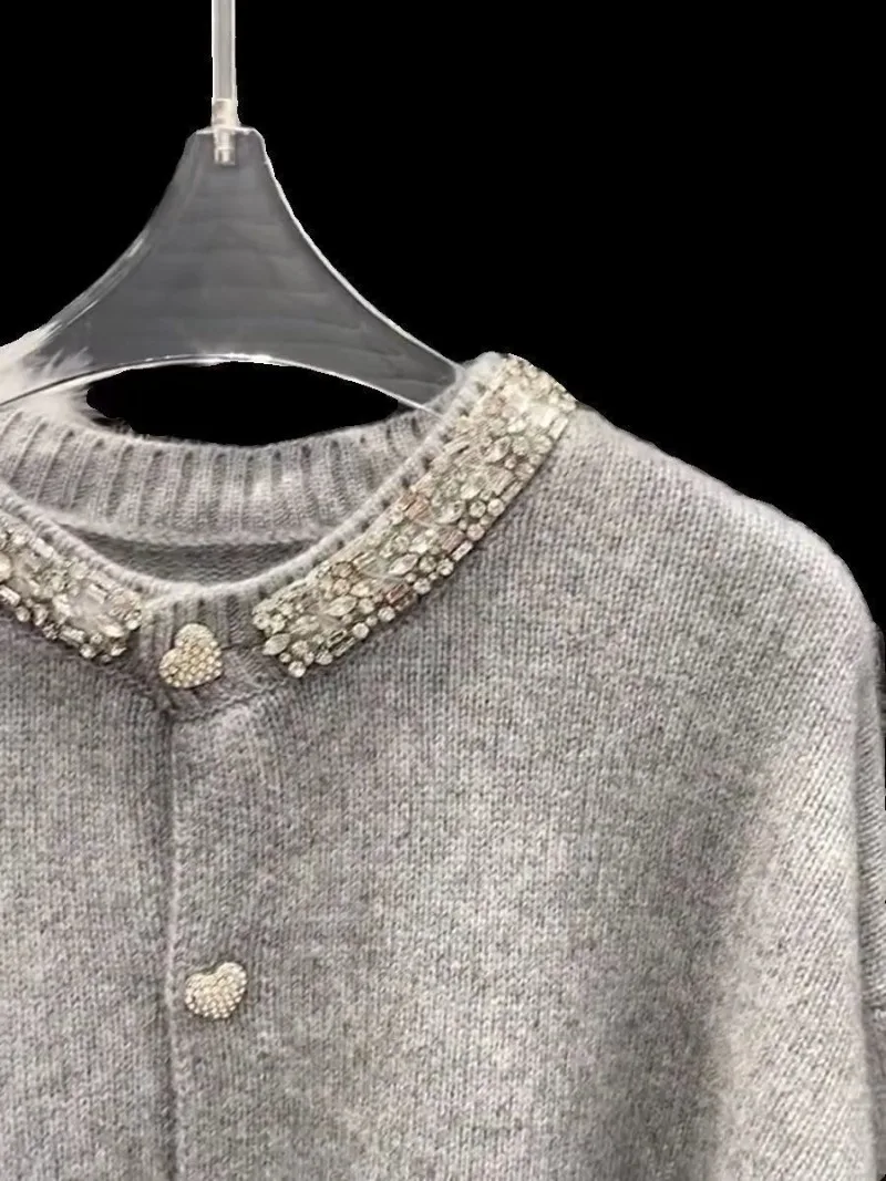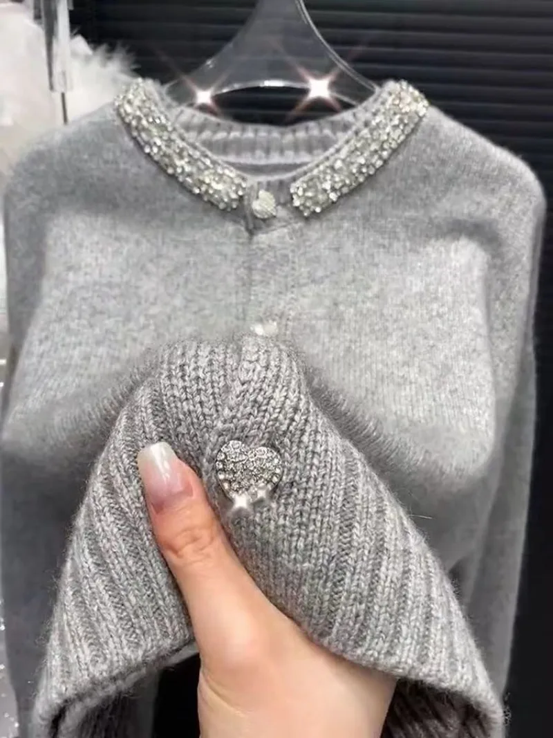 It is a very elegant sweater, the pattern cut is very good for women, the fabric is very nice and the color is fantastic finished with the buttons and rhinestone collar… simple and elegant.