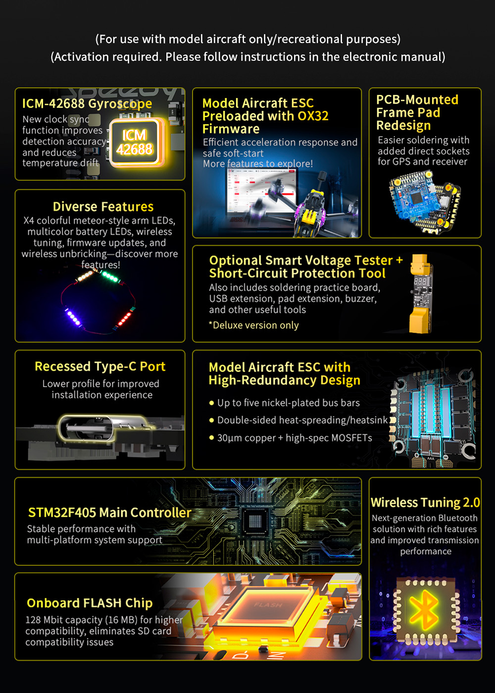 6. Wireless Tuning 2.0,Supports X4 MeteorLED Strips(Controllable via Betaflight)