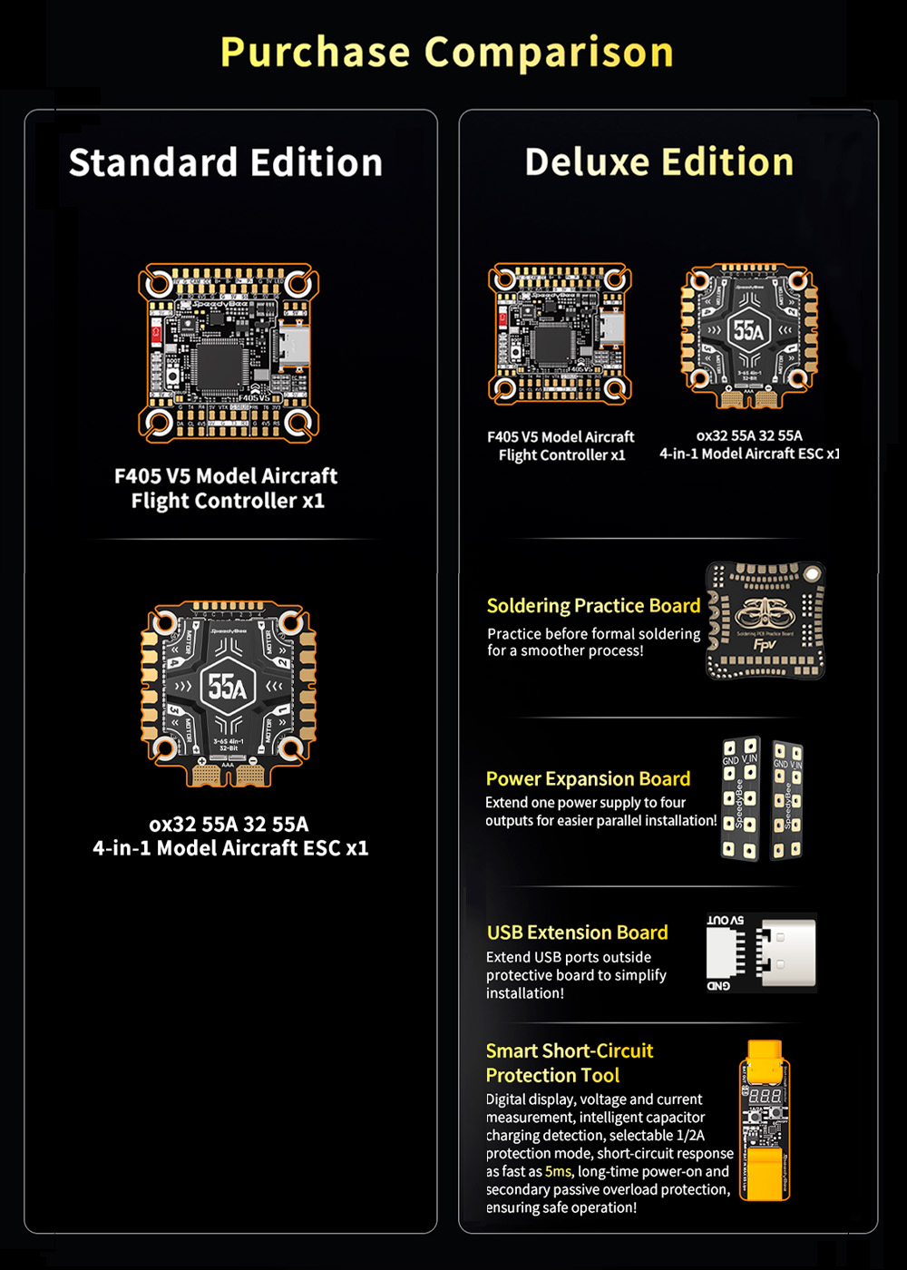 10. Optional Smart Voltage Tester +Short-Circuit Protection ToolAlso includes soldering practice board,USB extension, pad extension, buzzer,and other useful tools(*Deluxe version only)