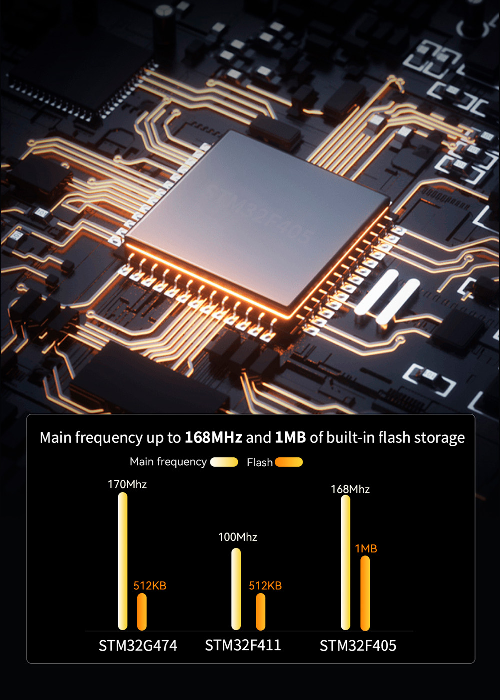 4. Main frequency up to 168MHz and 1MB of built-in flash storage.