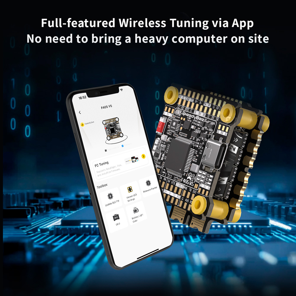Full-featured Bluetooth Tuning: Supported. Connect va SpeedyBee App for FC firmware tlashing and parameter tuning