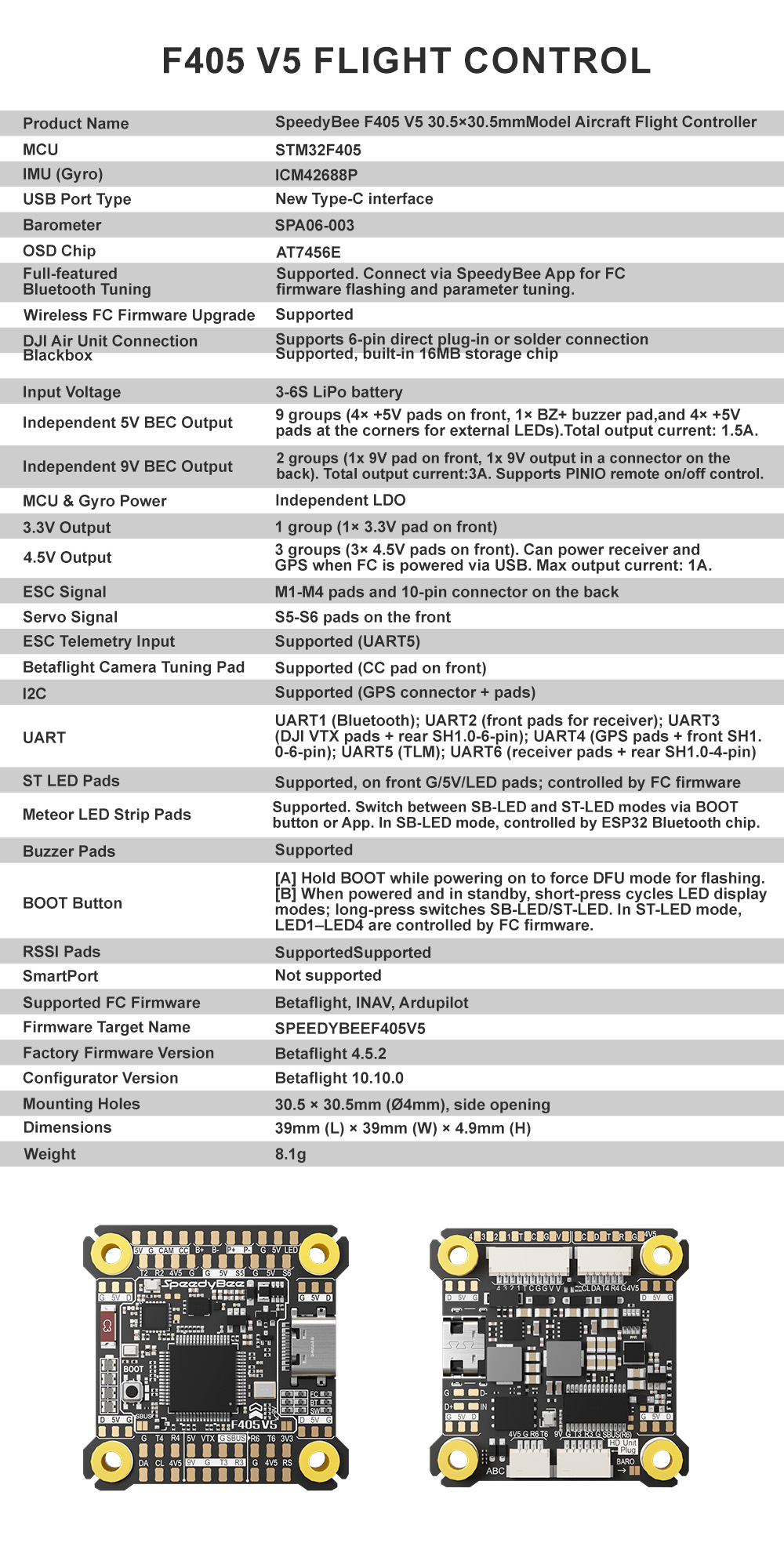 F405 V5 FC Specifications: