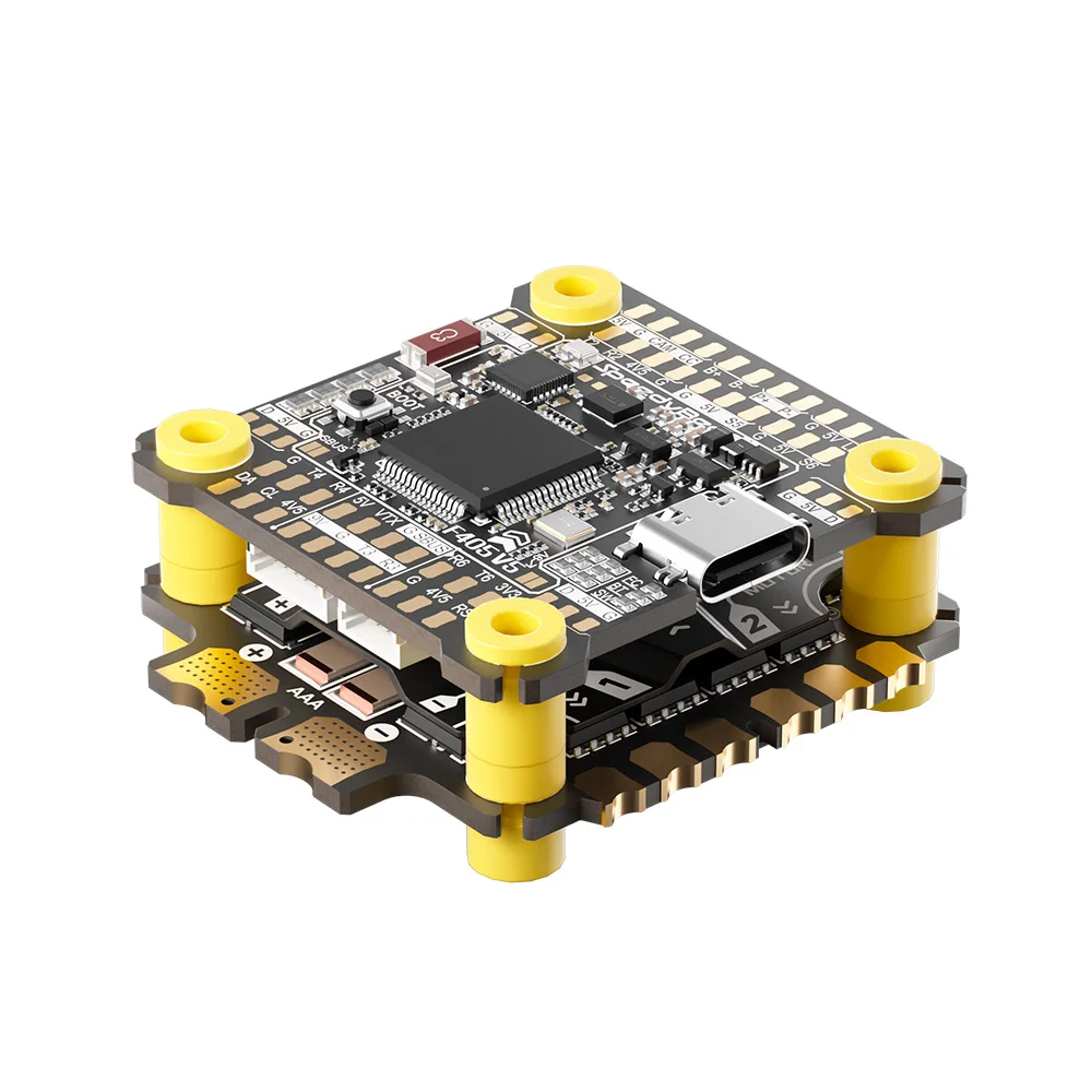 F405 V5 Flight Stack,onboard lCM-42688 Gyroscope,Featuring Upgraded Noise Reduction, Main frequency up to 168MHz and 1MB of built-in flash storage.Wireless Tuning 2.0 Next-generation Bluetoothsolution with rich featuresand improved transmissionper formance,Support Betaflight,INAV, Ardupilot.