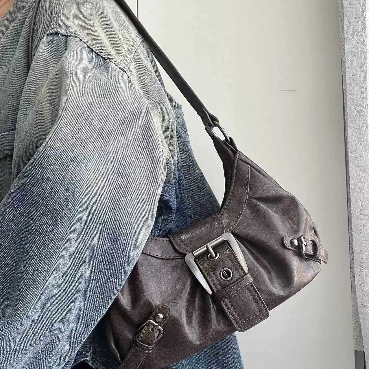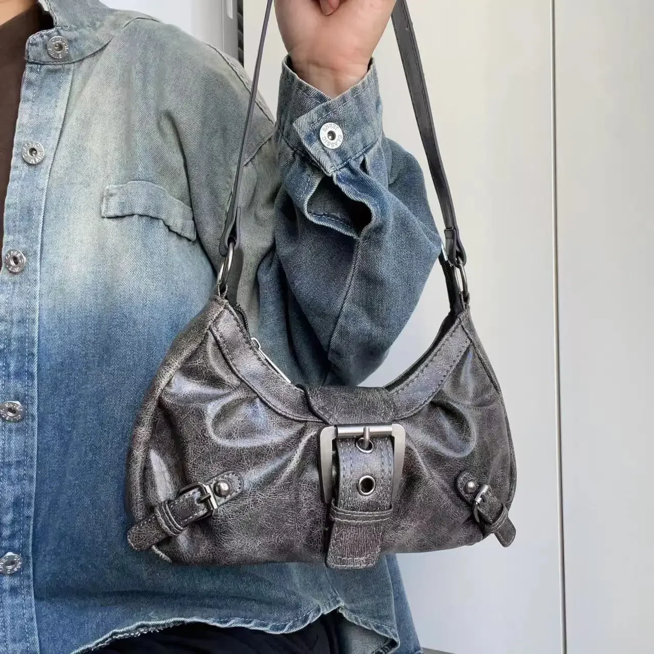 Be the first to review “Spicy Girl Y2K Wasteland Style Vintage Leather Shoulder Armpit Bag 2025 Spring Hot Selling Maillard Style Retro Style Small Bag”