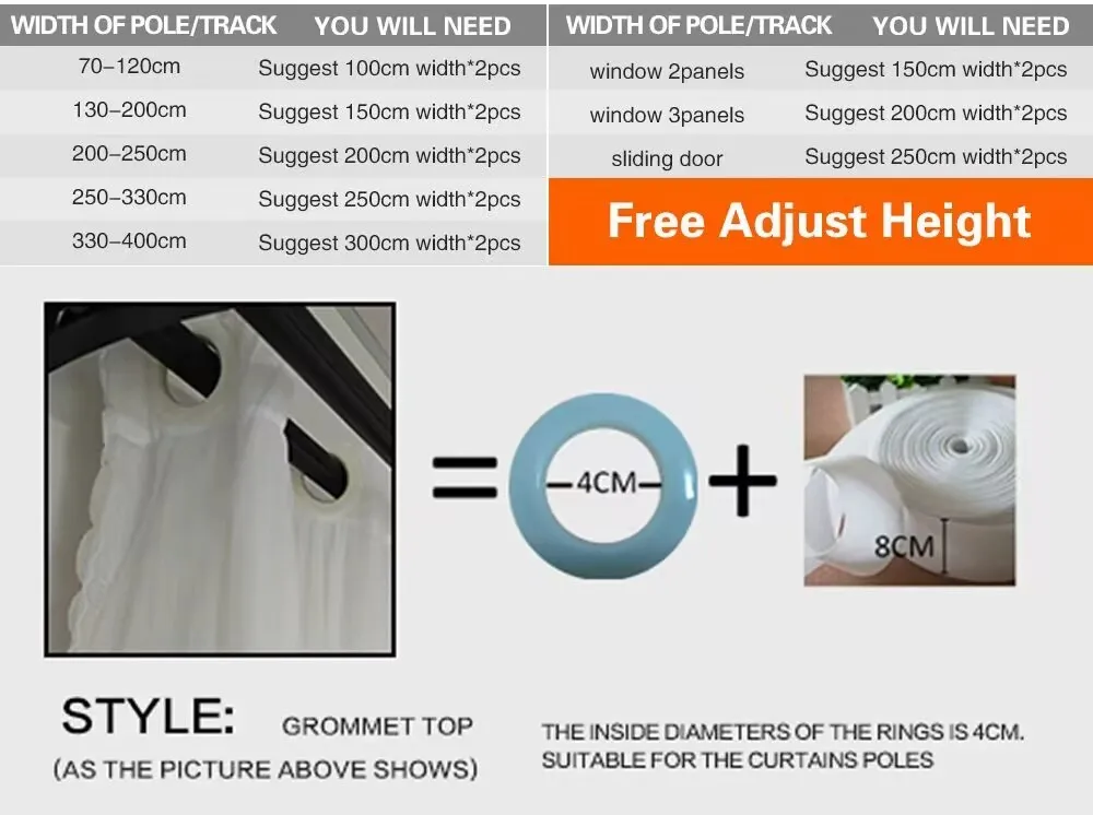 for example:pole width=100cm,Hight =200cm we suggest buy 2 piece 100x200cm curtains