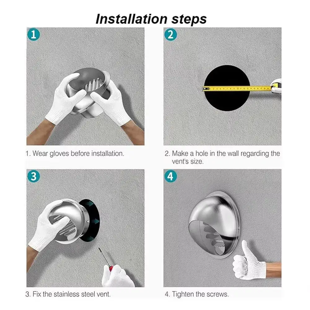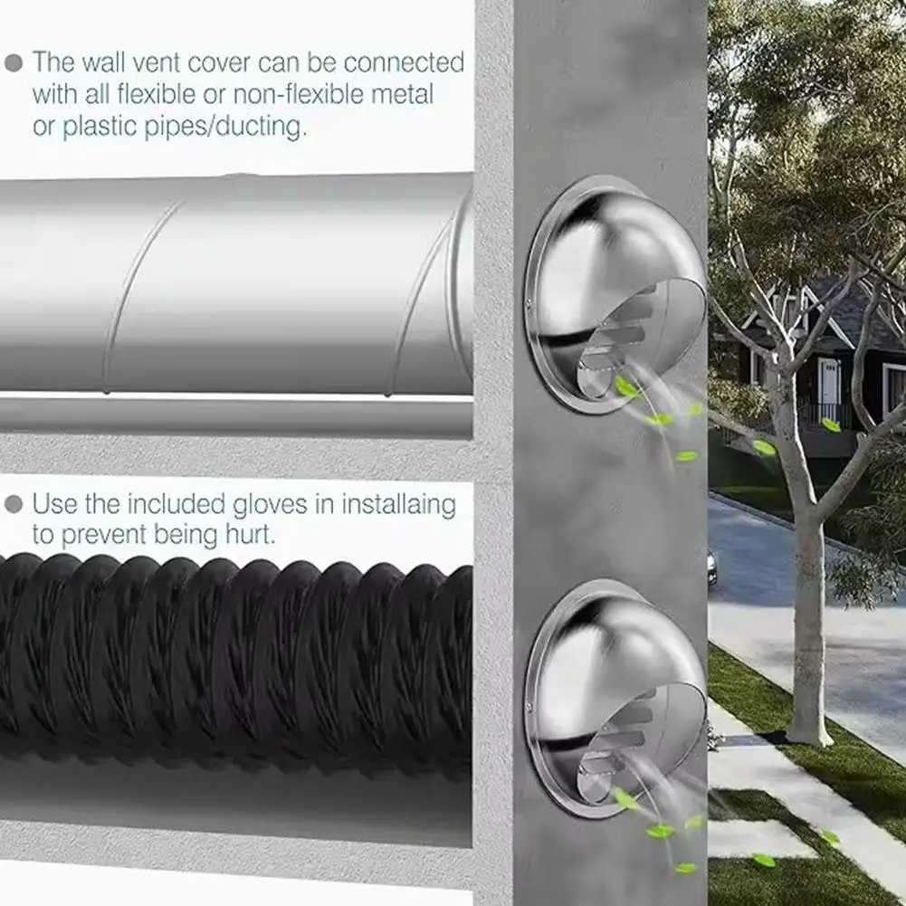 1.High quality:The outer wall vent cover is made of stainless steel, which is rust and corrosion resistant, and can prevent sunlight damage and cracking.