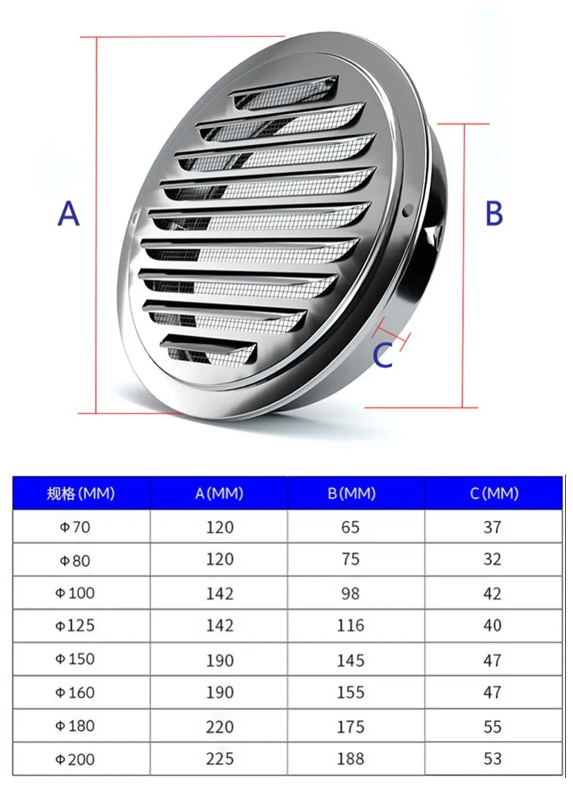 Installed in the outside wall, prevent the pest in the room through stainless steel net.