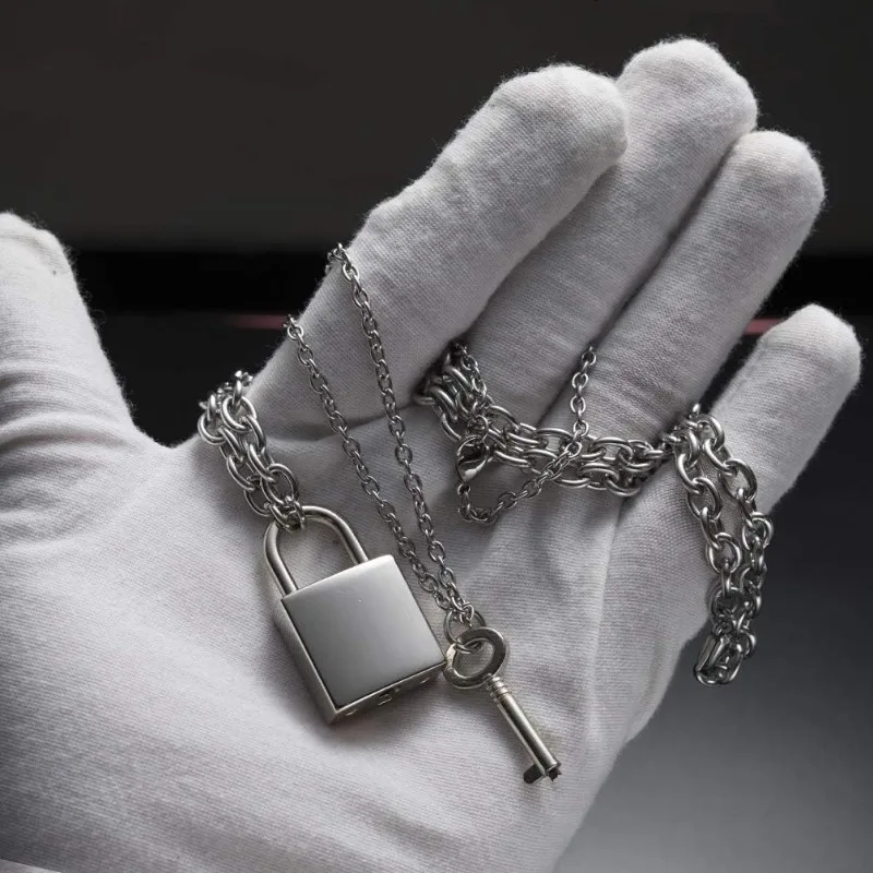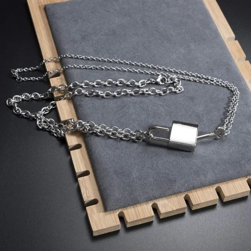 Lock necklace Material: emo necklace set necklace high quality stainless steel, never rust, corrosion resistant. Hand polished and polished. Quality pays attention to detail.The pendant is made of alloy.Lobster clasps are all hand-polished