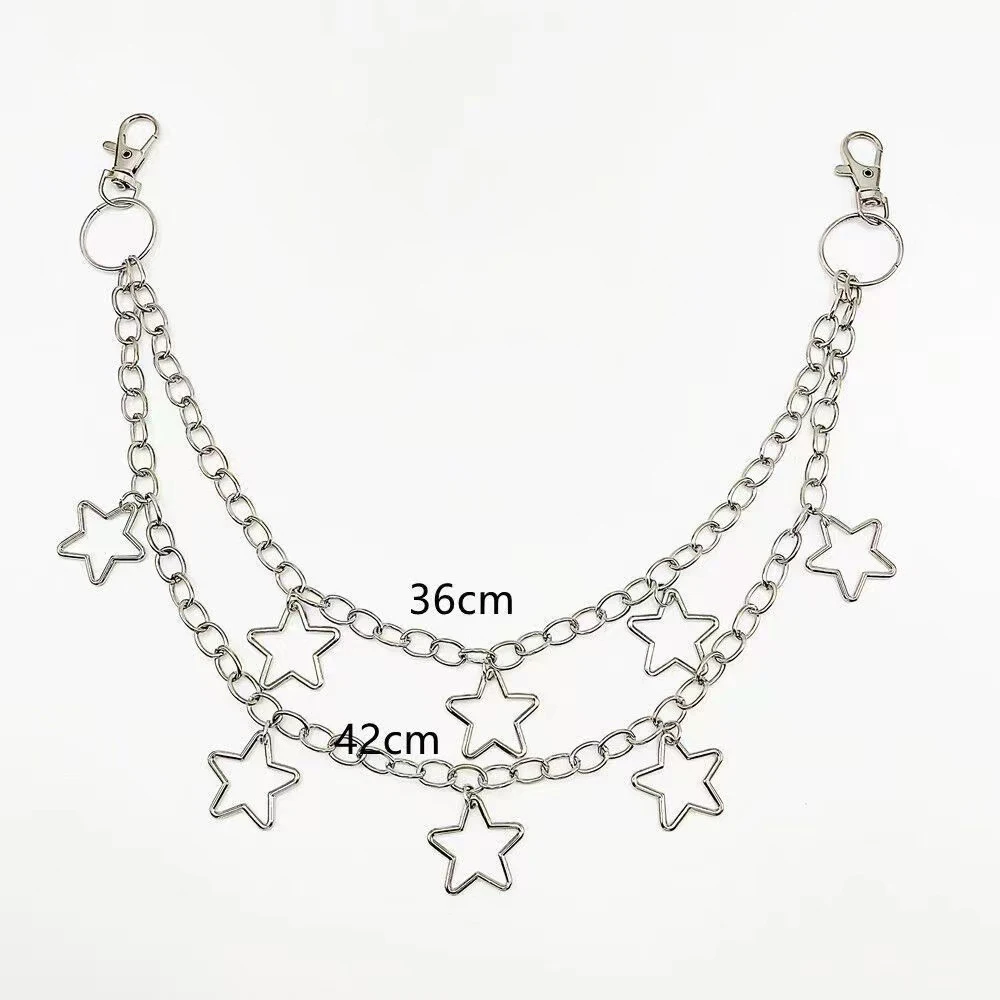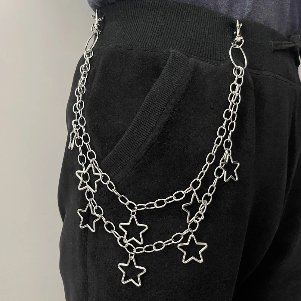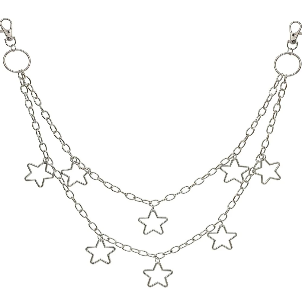 1pc Star Double Layer Waist Chain Mens Decorative Pant Chain Jeans Trouser Chains Hip Hop Rock Chain Punk Retro Belt Chain