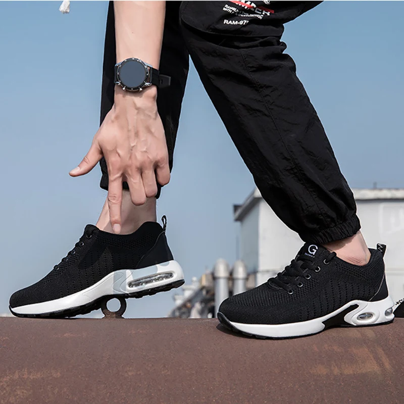 Super light safety shoe:It is like the weight of a pair of running shoes. They can help you to work happily all day without exhausting your feet. With super soft insoles and High elastic sole, your feet are safe and comfortable. Flying knit upper is very soft, Keep your feet comfortable and breathable.