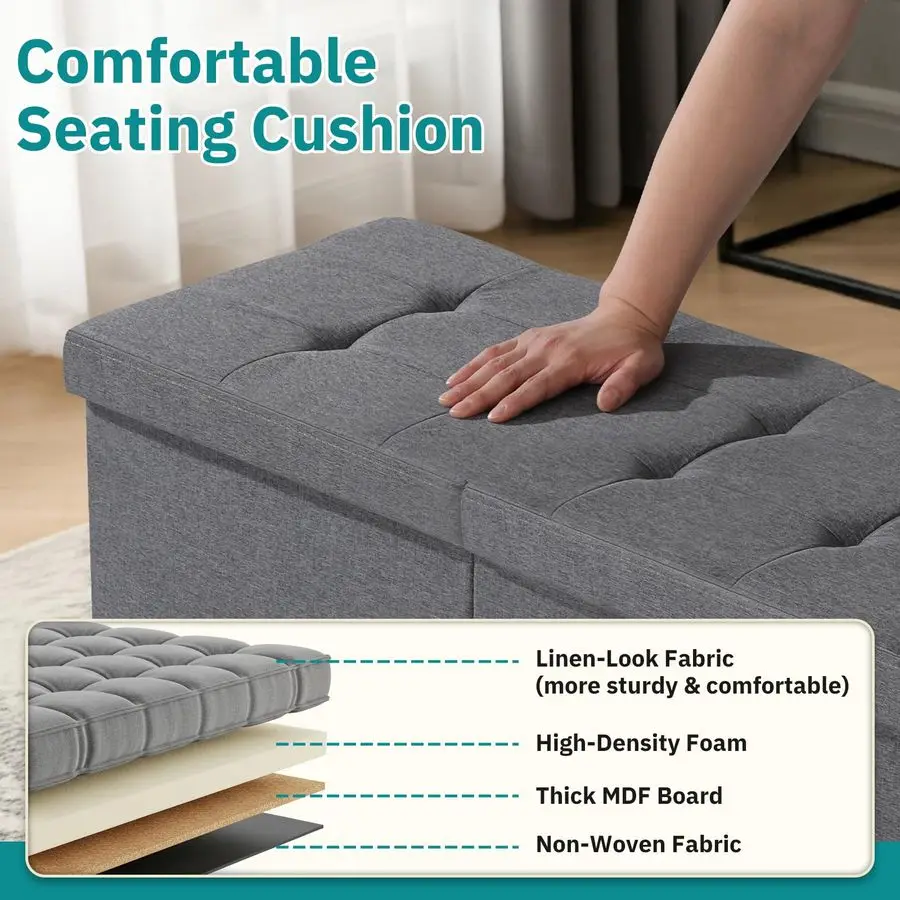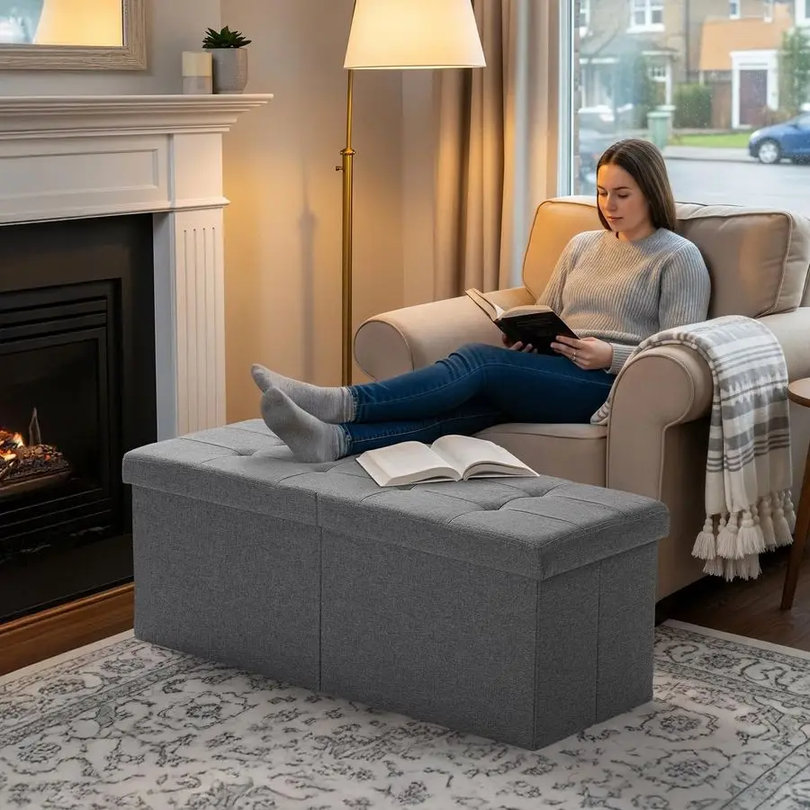 SpaceSaving DoubleGrid Storage Perfectly sized at 35 x 13 x 13, this ottoman fits effortlessly at the foot of the bed, by the wardrobe, beside the sofa, or in the entrywaycompact but surprisingly spacious for all your daily essentials. Collapsible design folds flat in seconds, tuck it into a cabinet when not in use to keep your space open and organized