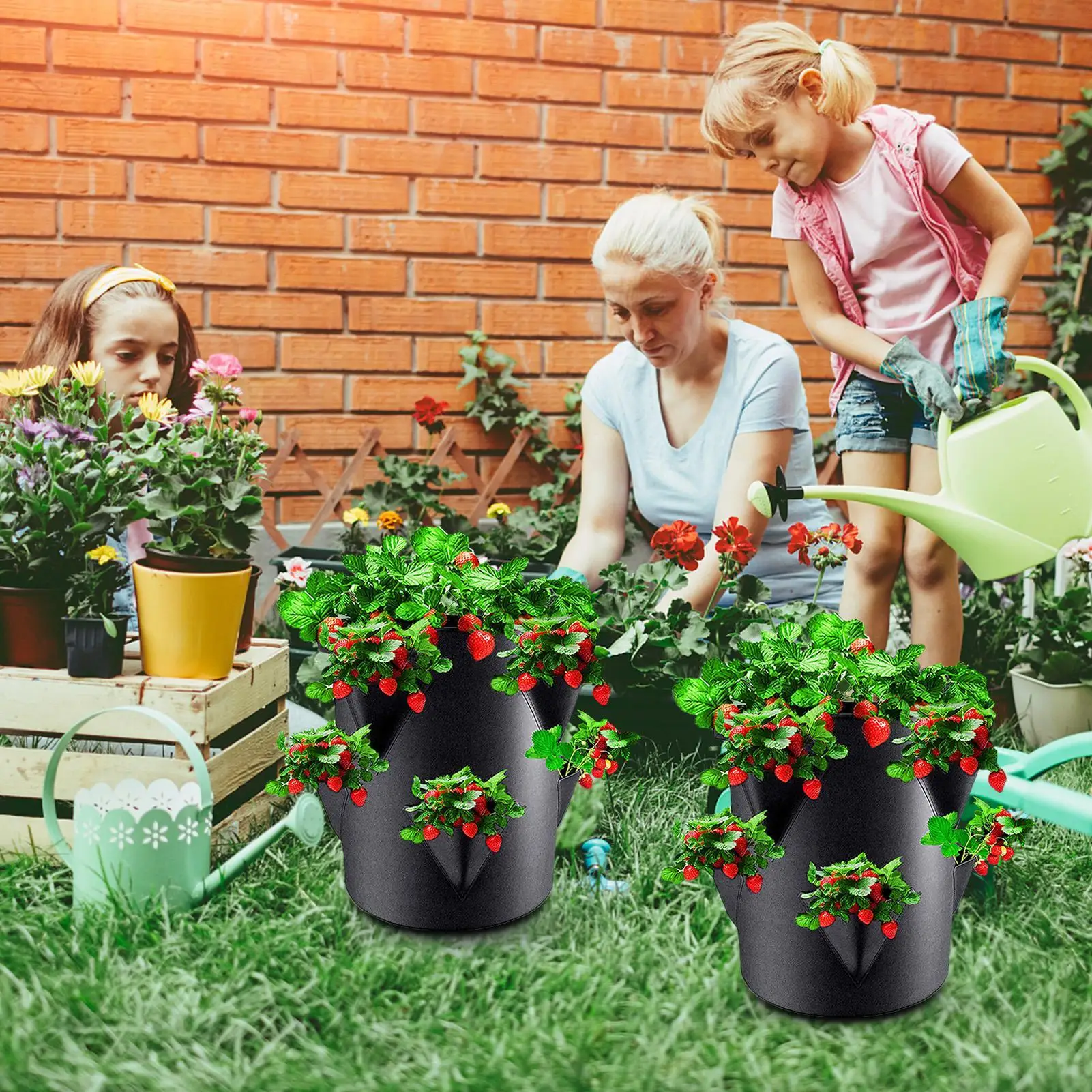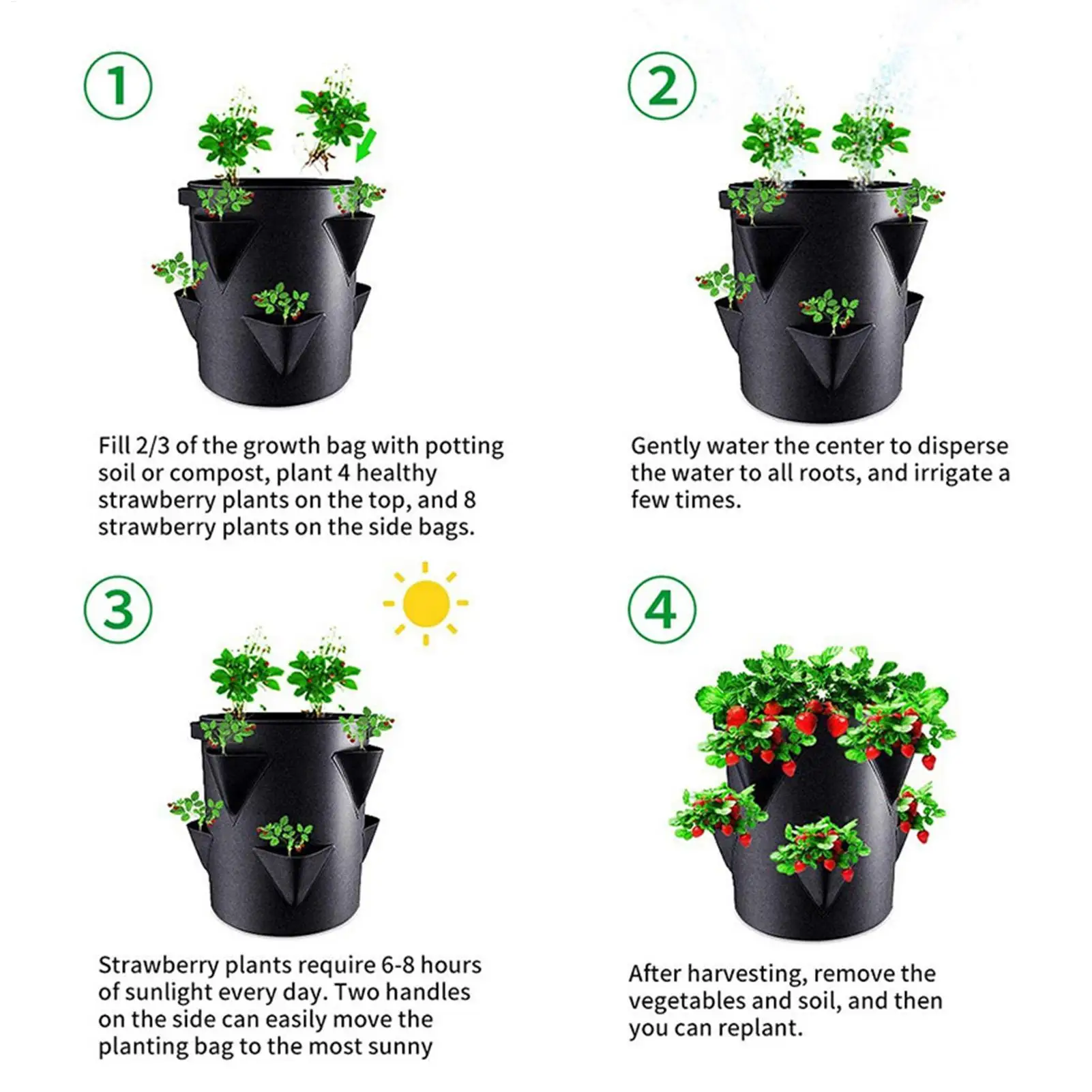 5.Multiple Used: This strawberry planting bag is made of high-quality material that can withstand wear and tear. It can hold vegetables, herbs, flowers, or other plants securely. It is perfect for balcony, courtyard, or outdoor gardening. This strawberry planting bag can also be used indoors.