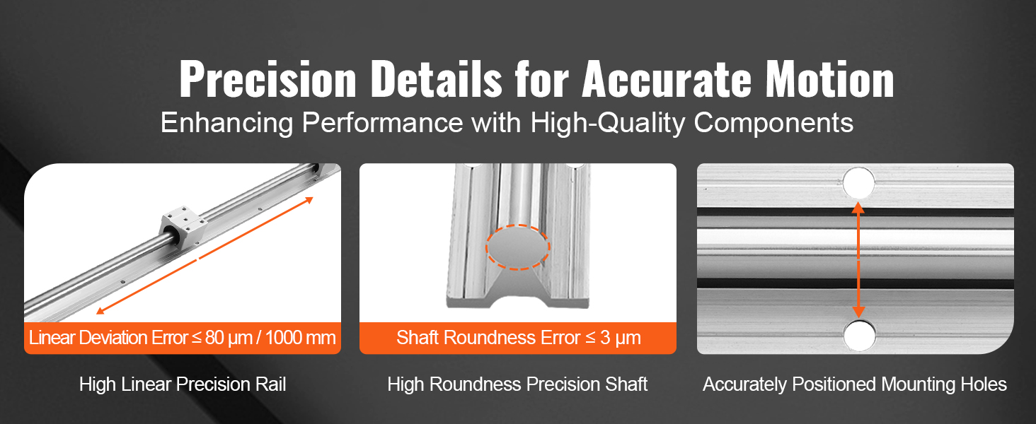 【High Precision for Reliable Performance】:The linear rails boast precise circular shaft dimensions and straightness, providing high accuracy and stability in motion. The sturdy aluminum base and accurately placed mounting holes ensure easy and reliable installation.