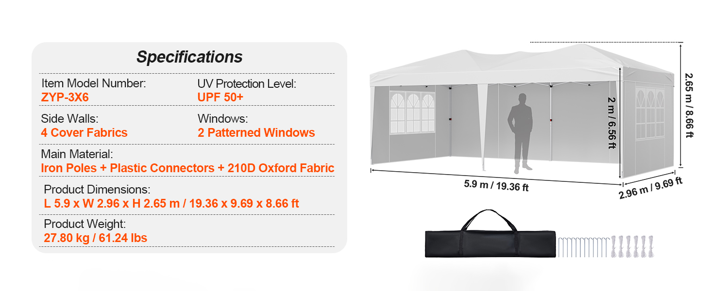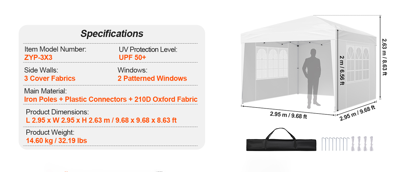 Reliable Coverage: Made from durable 210D silver-coated Oxford fabric, this instant pop-up gazebo provides UPF 50+ sun protection and water resistance. The included sidewalls with windows enhance privacy while allowing for proper airflow.