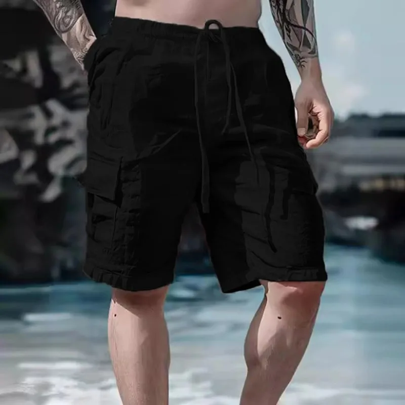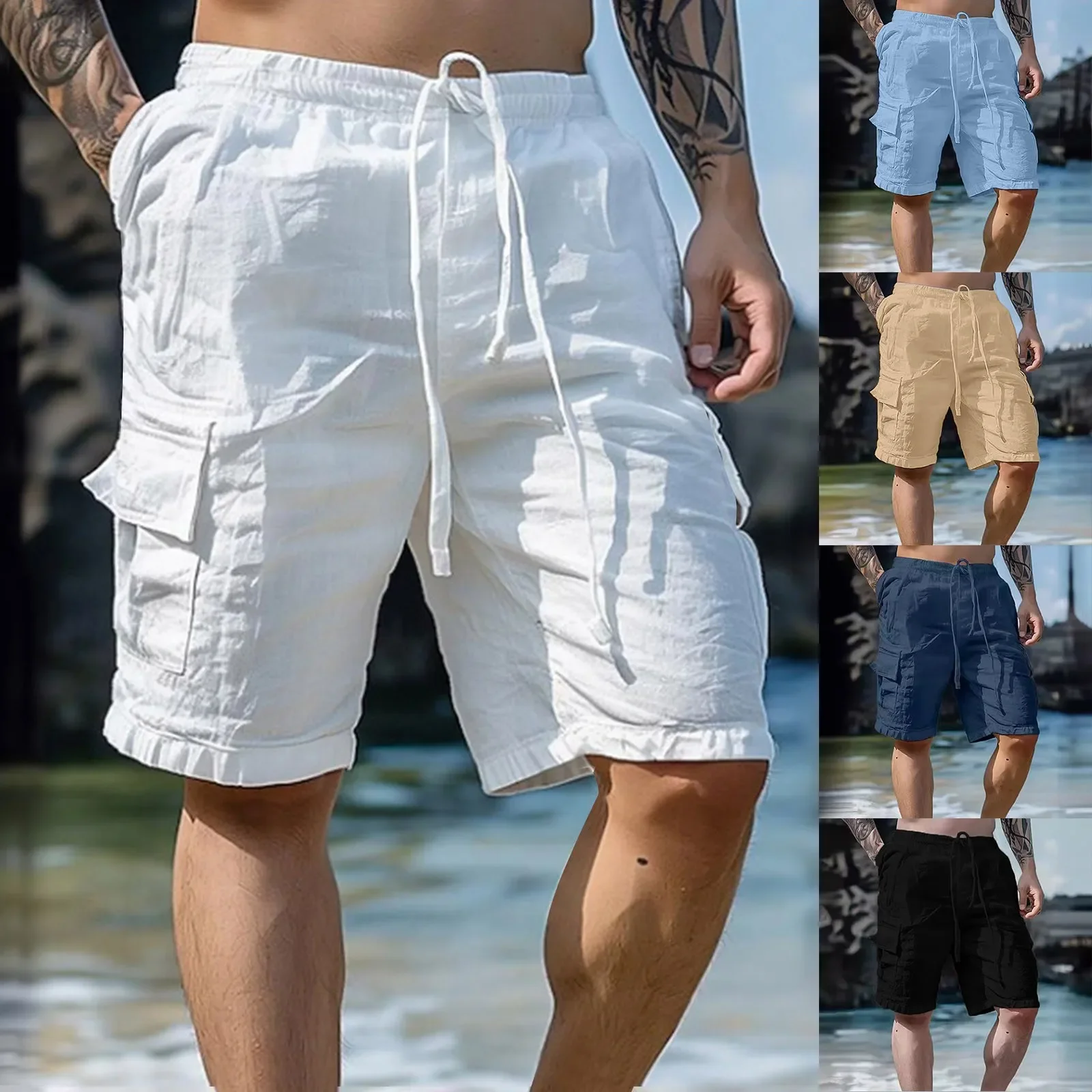Men Spring And Summer Pant Casual All Solid Color Painting Loose Plus Size Trouser Fashion Beach Pockets Short