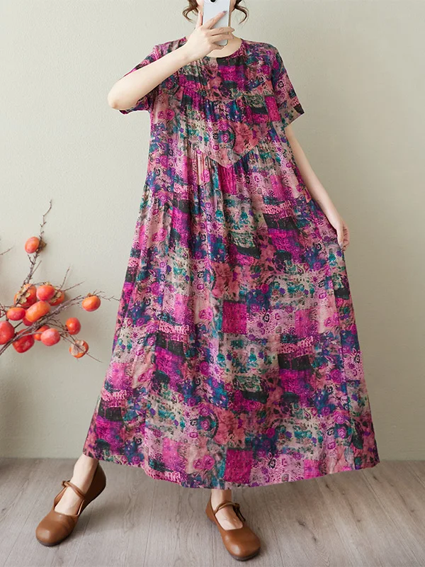 The dress features a retro cotton linen print design, offering a unique and stylish look for the summer season.