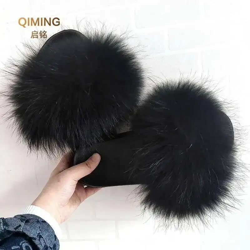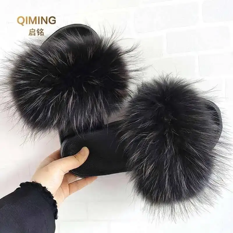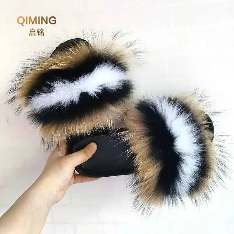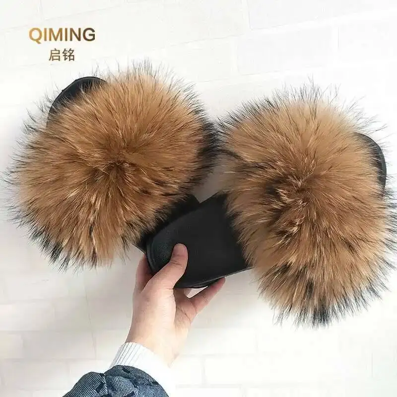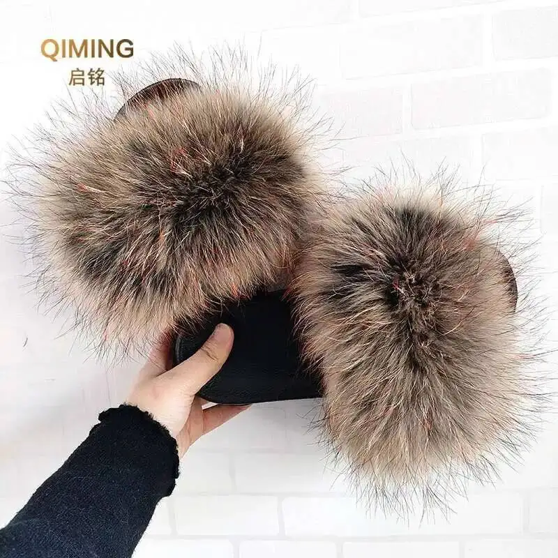 Crafted from real raccoon fur, With their plush raccoon fur and chic slide design, these slippers make a bold fashion statement, elevating any outfit.
