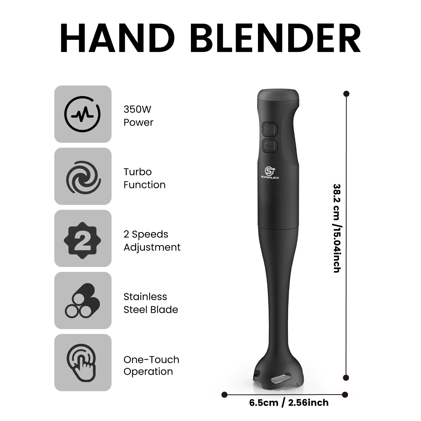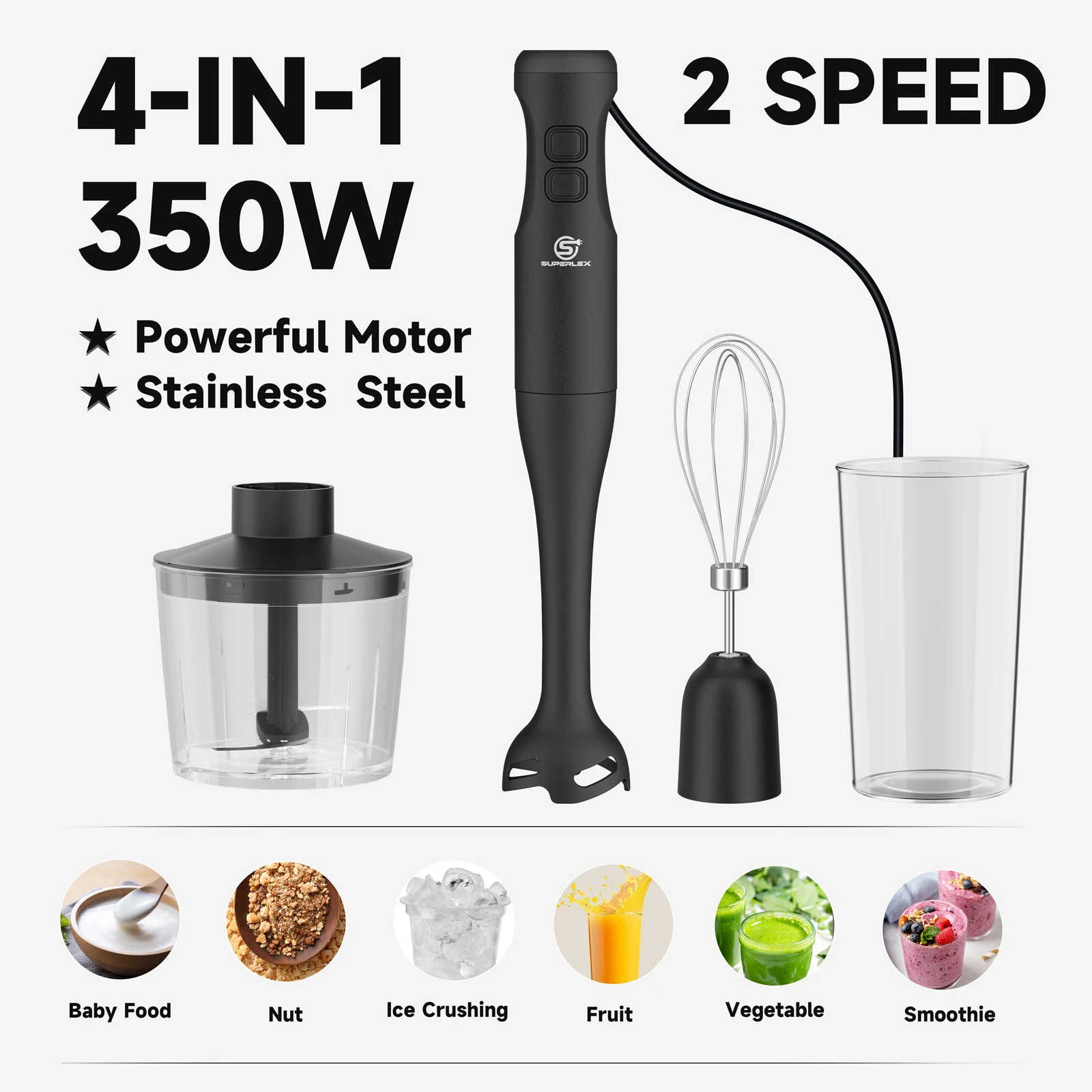 • ⚡ Powerful Performance: 350W motor efficiently handles blending, chopping and whipping for all your cooking needs.