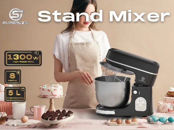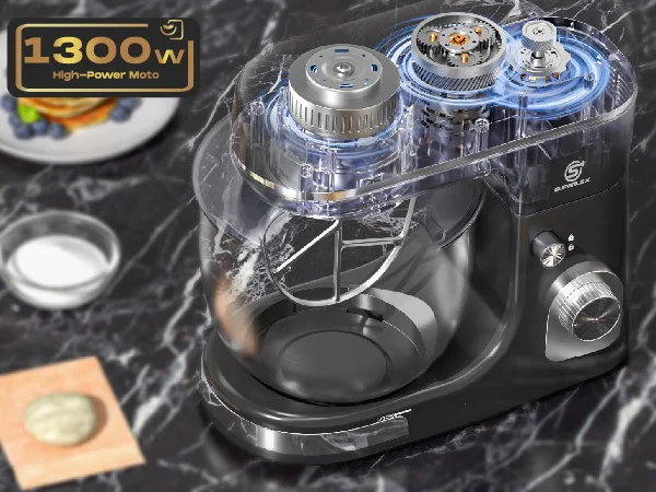 • Powerful Performance: The 1300W motor provides robust power to handle mixing, whipping, and kneading tasks efficiently.