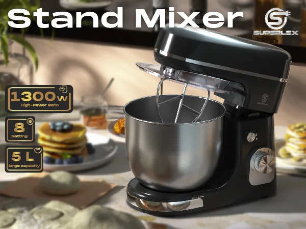 • Generous Capacity: Includes a 5L stainless steel bowl, offering ample space for family-sized batches and small baking projects.