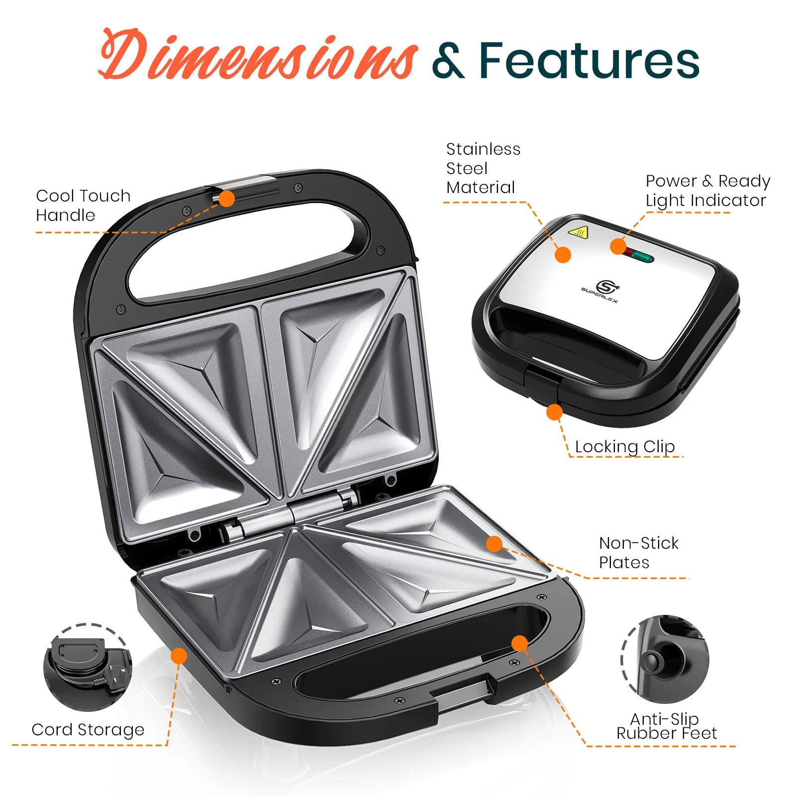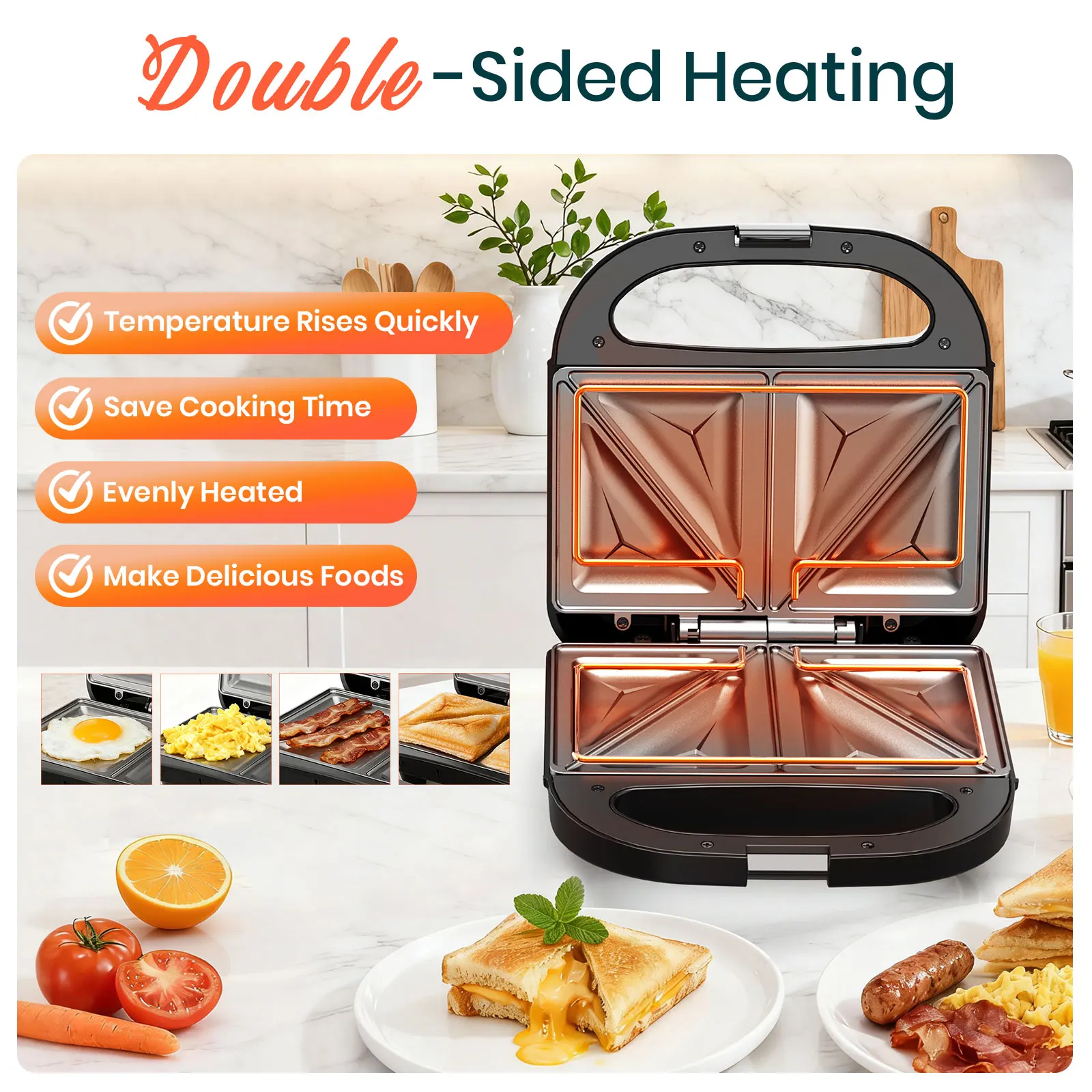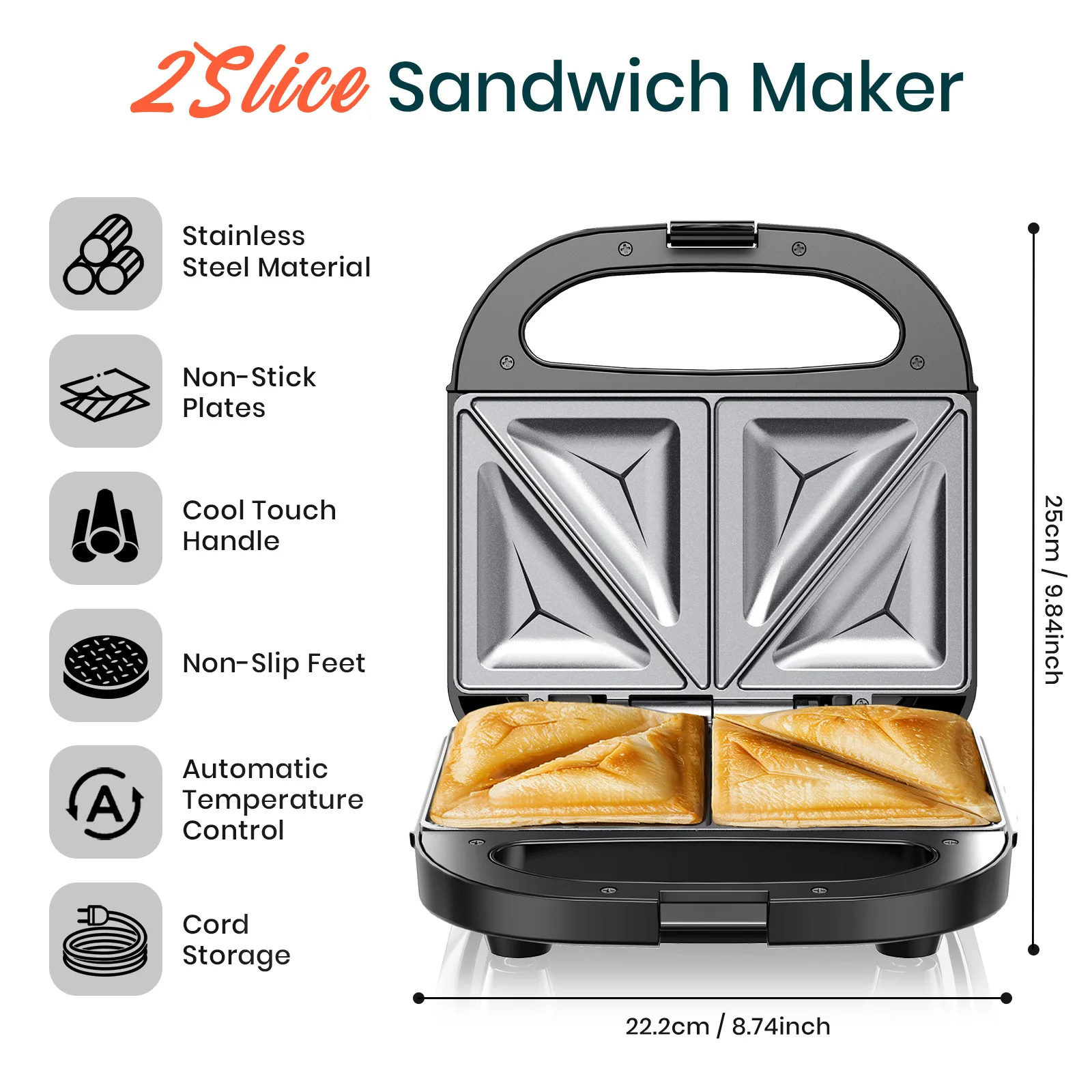 • 🥪 Dual-Slice Design: Makes 2 sandwiches at once, ideal for layered, flavorful treats.