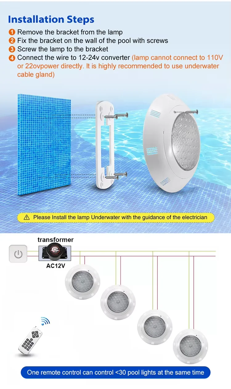Surface Pool LED 12V Underwater Light RGB Swimming Lamp IP68 Water proof ABS 12W 18W 25W 36W 45W Fountain Lighting