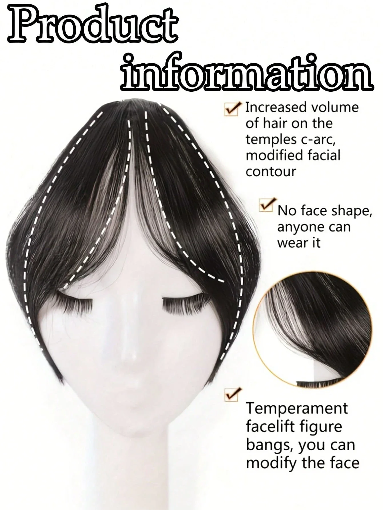 The bangs are very convenient—easy to attach, look natural, and help quickly change your look without a haircut. The hair is soft, doesn’t tangle, and holds its shape perfectly. A great option for experimenting with your appearance!