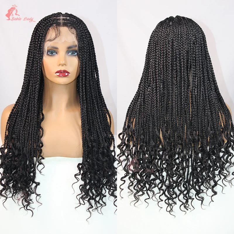 26" Synthetic Knotless Box Braided Wigs French Curly Full Lace Braids Hair Wig Afric Cornrow Braiding Lace Wigs For Black Women