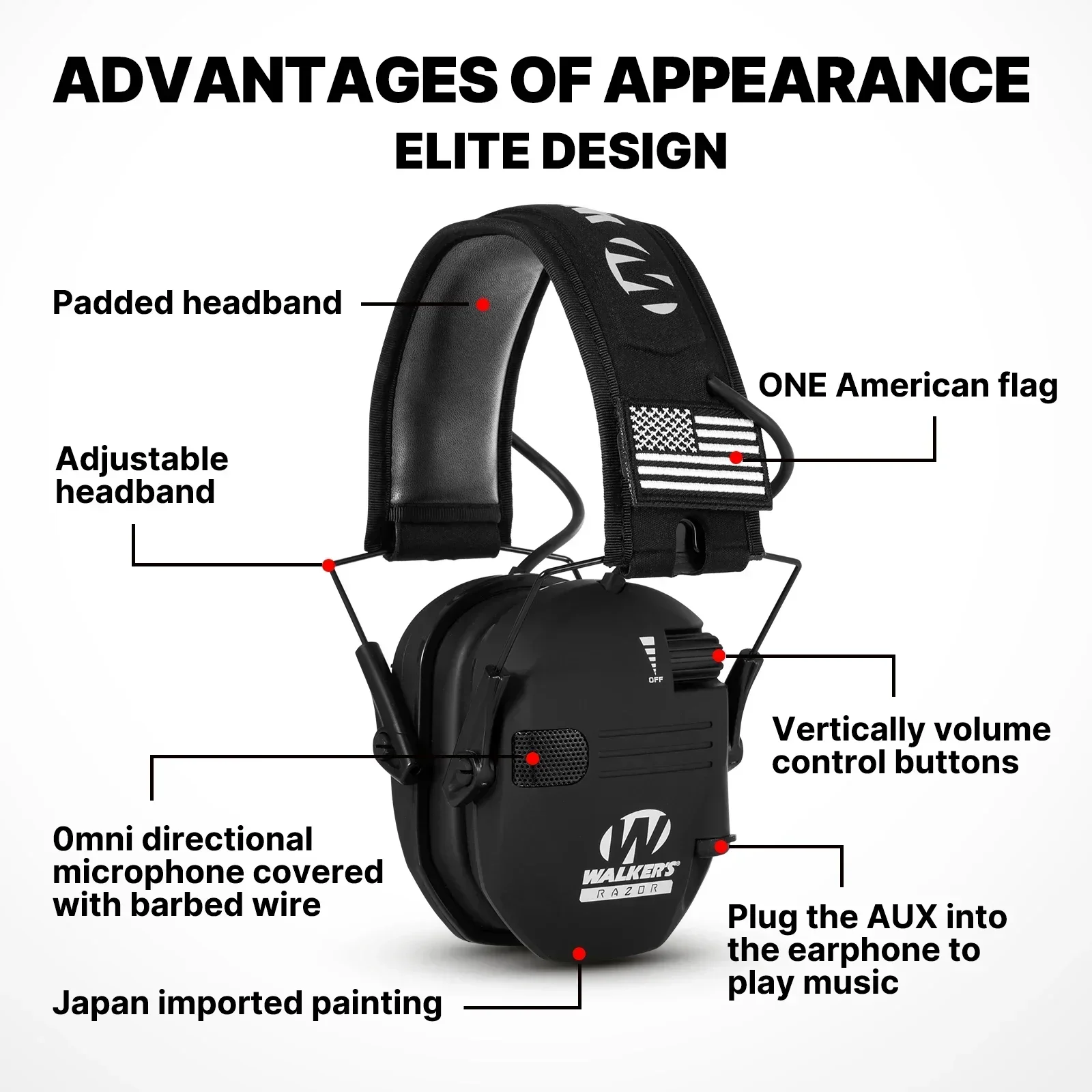 RELIABLE WORKMANSHIP QUALITY: This adjustable shooting headphones are made of high-quality rubber paint, which feels better than other earmuffs, has better protection. The headband of the earmuffs uses artificial leather and is stitched by hand. Water, sweat and stain resistant. Lightweight and foldable for easy portability