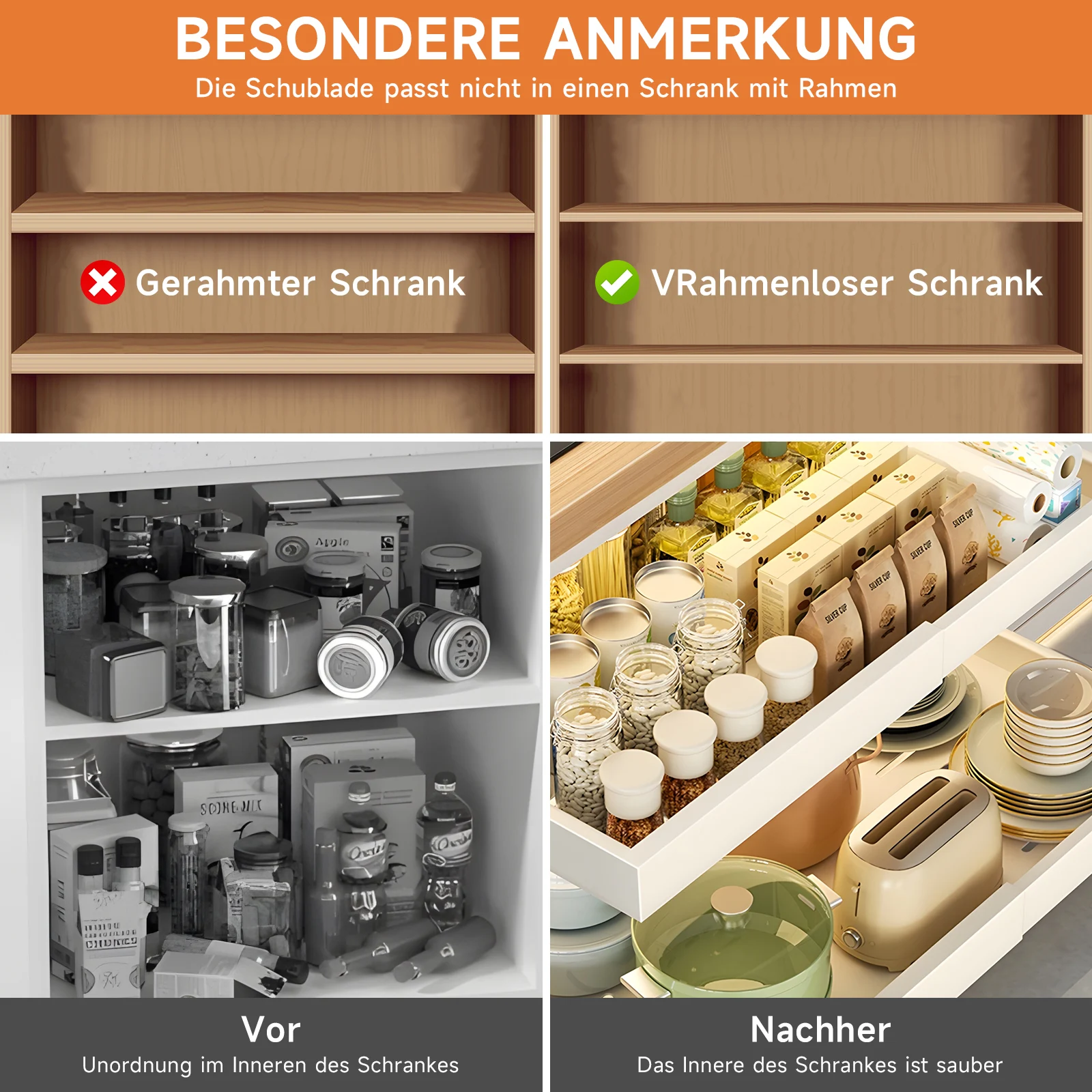 With this extendable drawer you can easily use more space in cupboards, sinks and cloakrooms to store snacks, spices, pots and pans, drinks, cleaning utensils and other small parts. Fits all cupboards with standard depth and can be used in the kitchen, bathroom, office, pantry, bedroom, living room to keep the room tidy, also a inauguration gift for friends, family or colleagues.