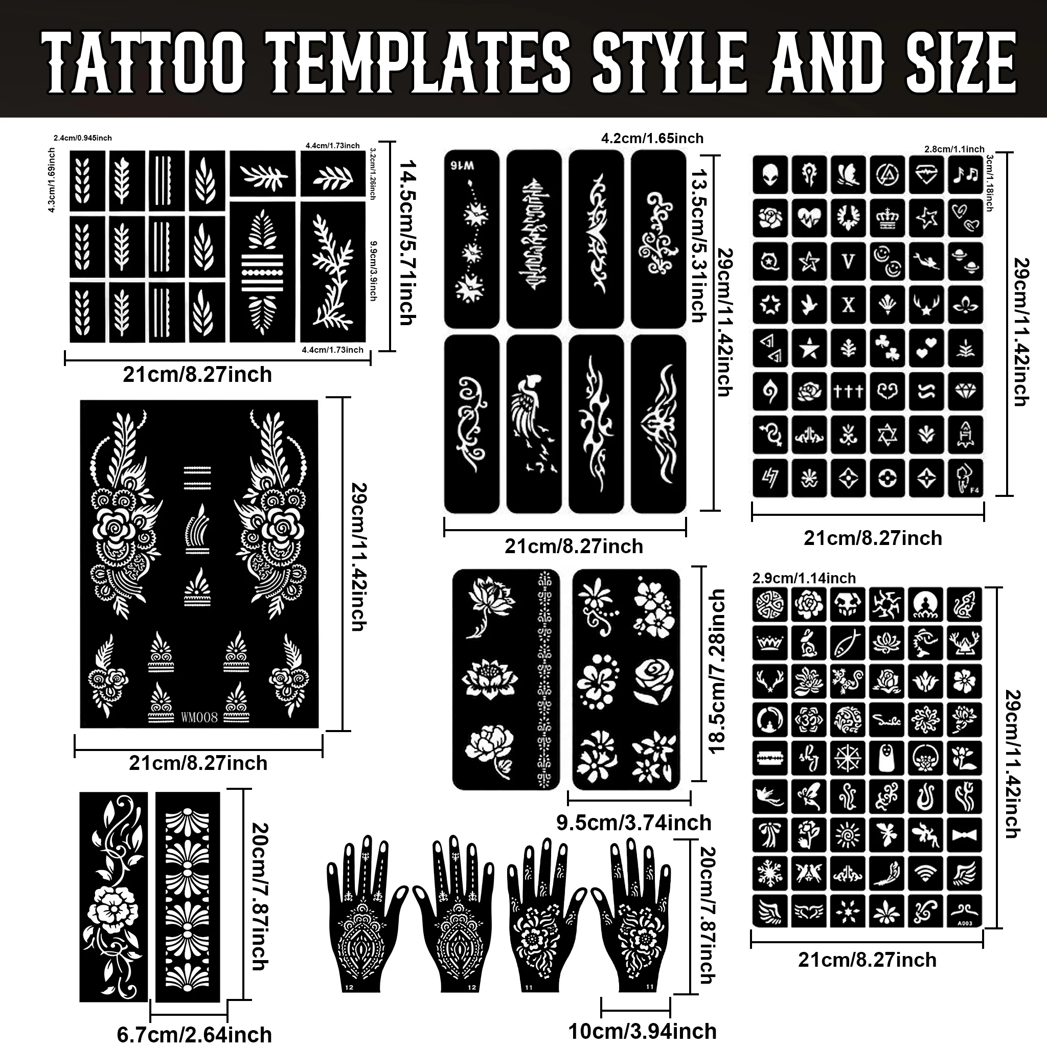 2. Tattoo Stencil Templates 7 sheets (145pcs Tattoo Patterns)
