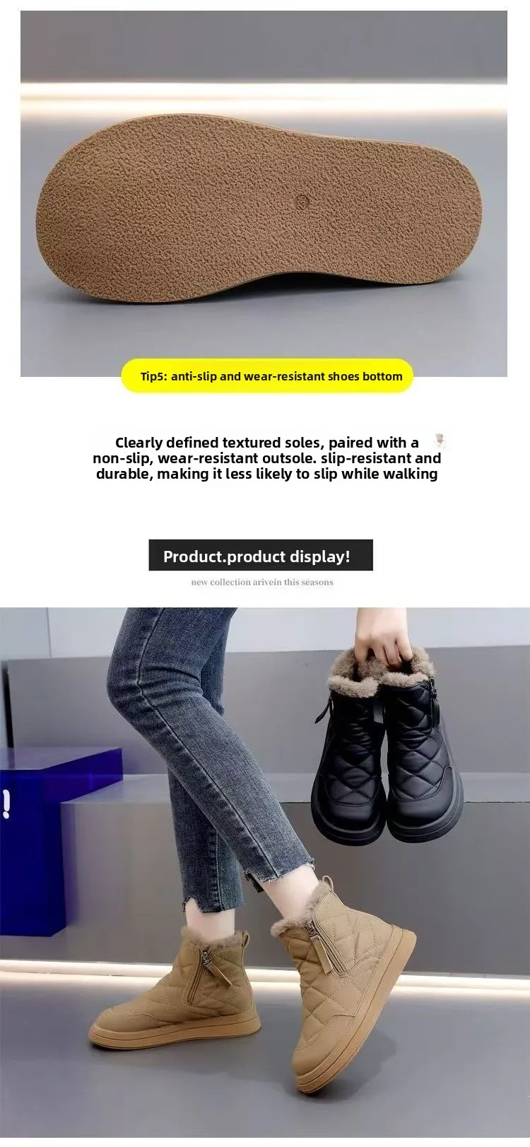 The thick sole design provides excellent traction and stability, making these boots perfect for winter conditions.
