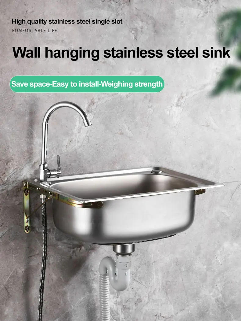 304 Stainless Steel Single Bowl Sink with Wall-Mount Bracket – Effortless Elegance for Your Kitchen