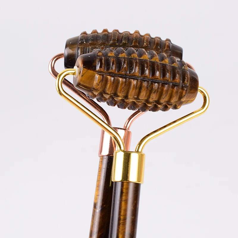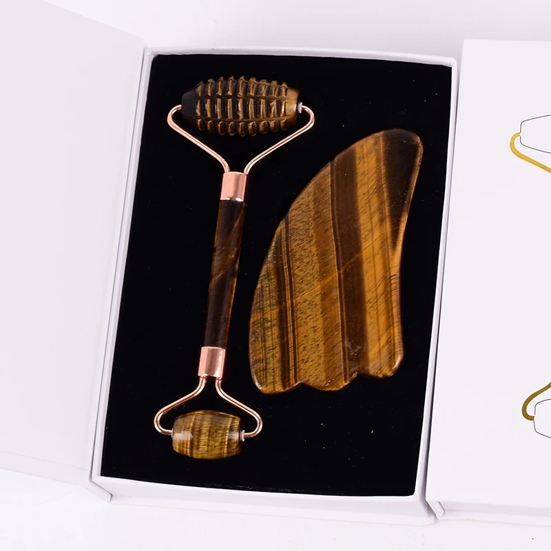 Tiger Eye Sawtooth Roller Shoulder Neck Massager Natural Stone Face Care Gua Sha Massage Set Tool acupuncture Health Beauty
