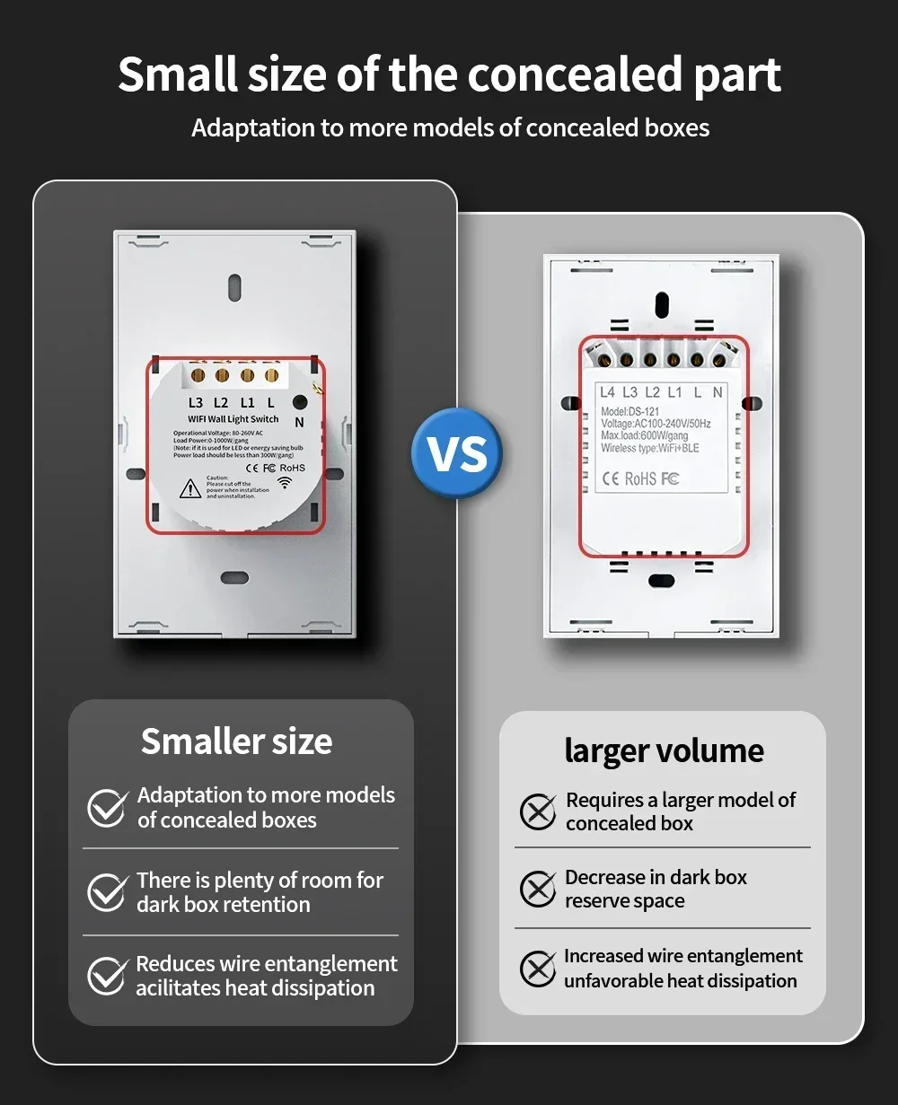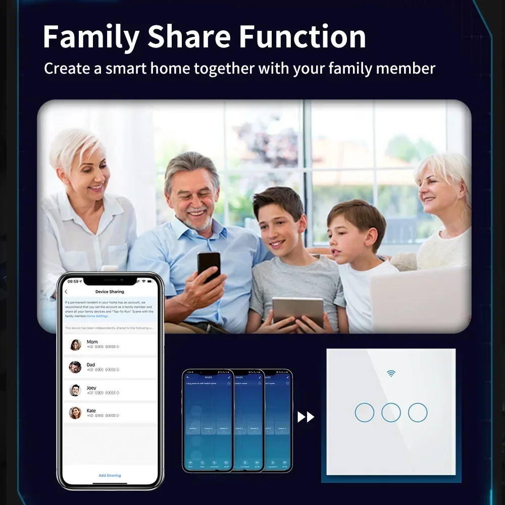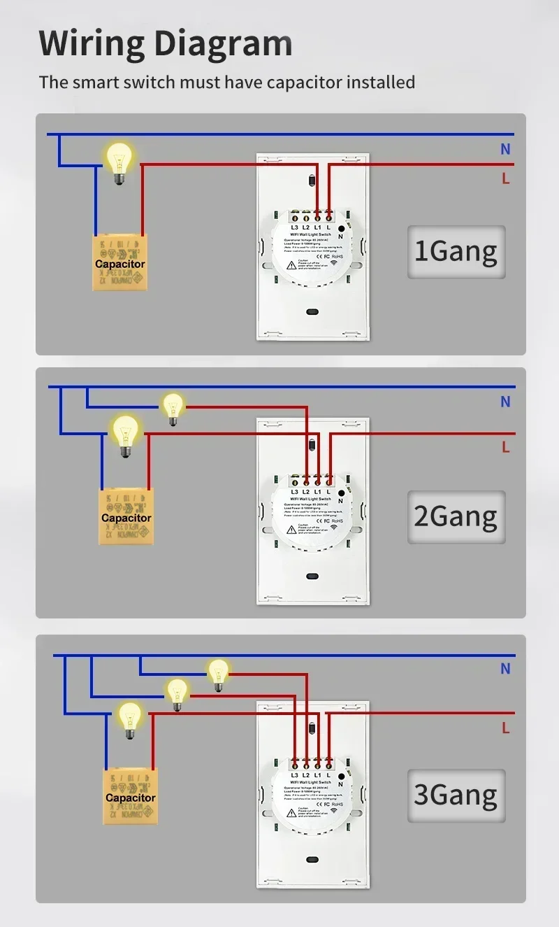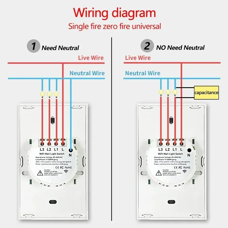 Set on APP, Easy installation and wiring. Switch1 connect normal wiring and connect the light bulb. Switch2 only needs normal wiring, No need to connect the light bulb.