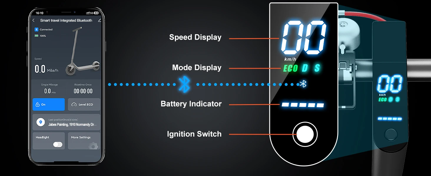 ✨【10.4Ah BATTERY & LCD Screen】The TODIMART T3 Adult Electric Scooter is hitting the market!⚡⚡⚡ Its 280.8Wh lithium battery allows you to travel 30-35KM on a single charge. The color LCD screen clearly displays information such as battery capacity, speed, and mileage, letting you ride worry-free. Thanks to the Bluetooth connection, you can use many functions via the app, such as locking/unlocking, customizing the maximum speed, cruise control, etc.