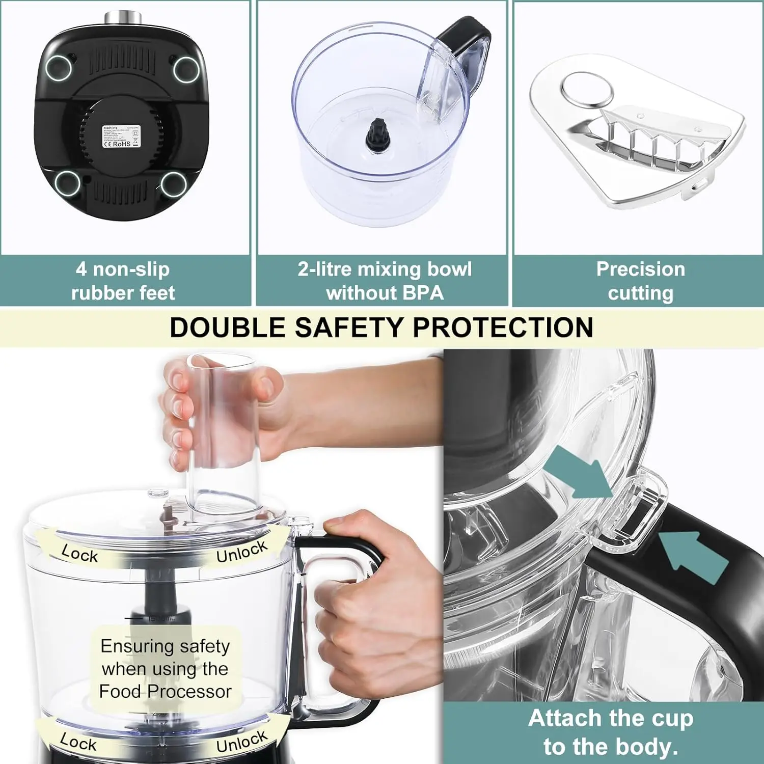 2L Mixing bowl & Large feed chute