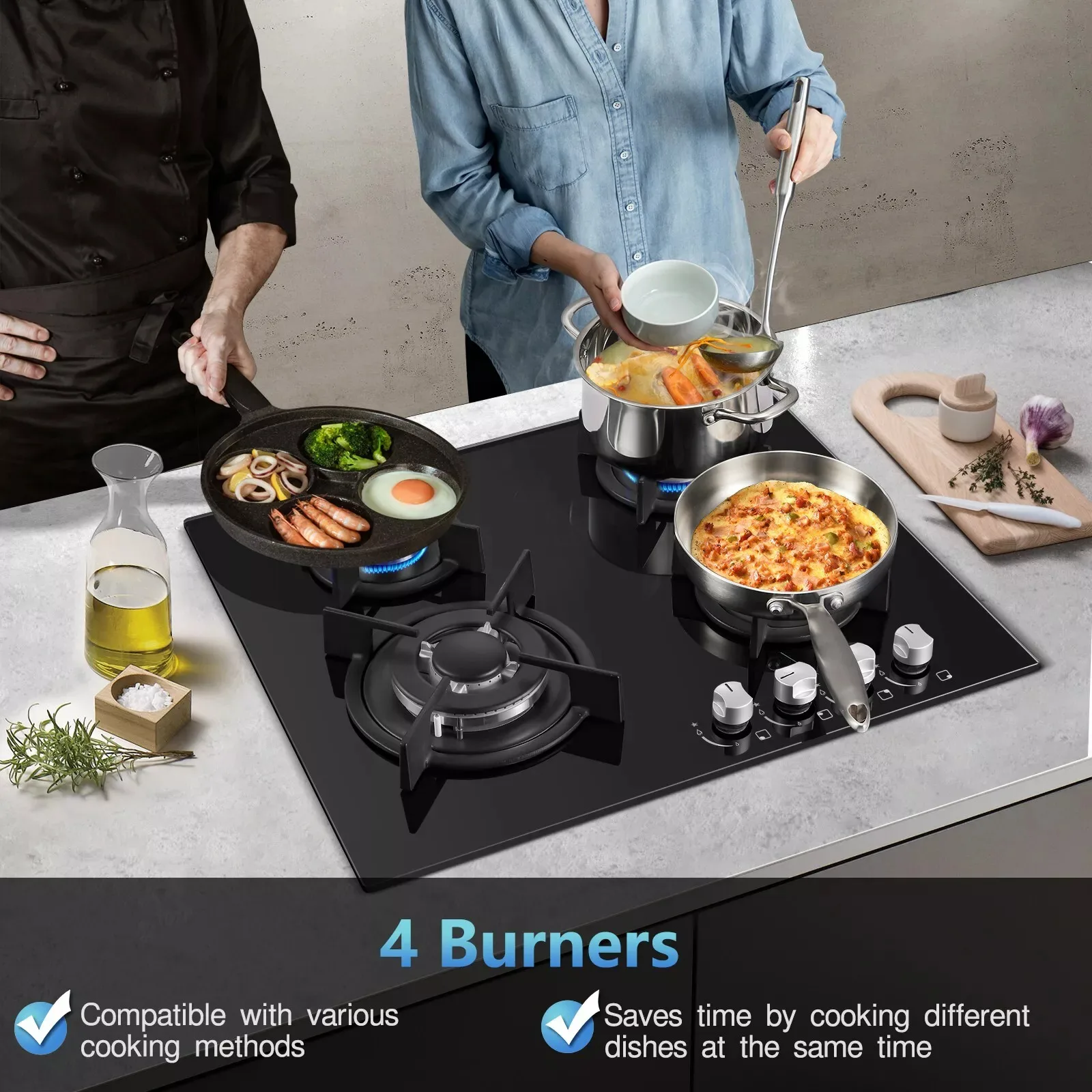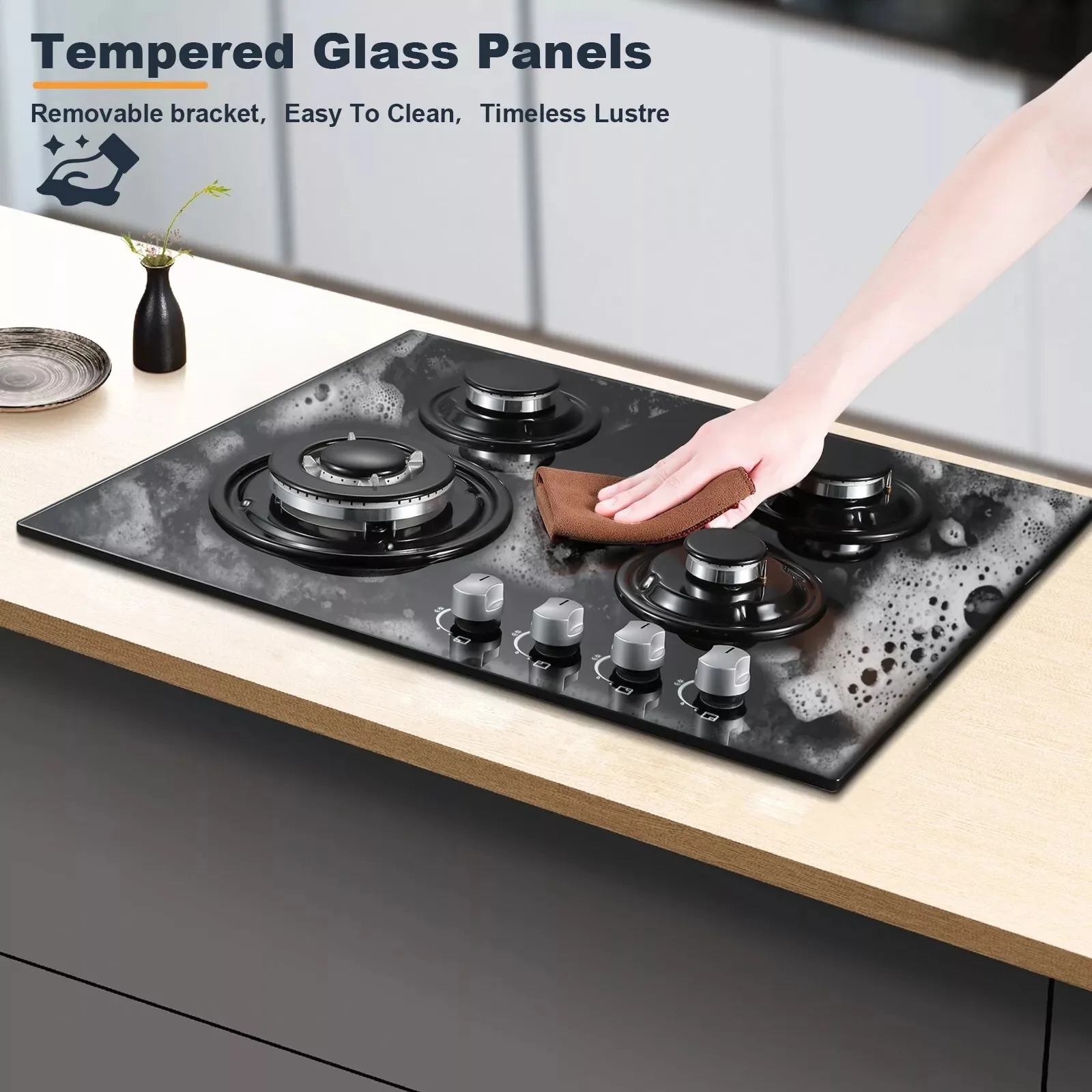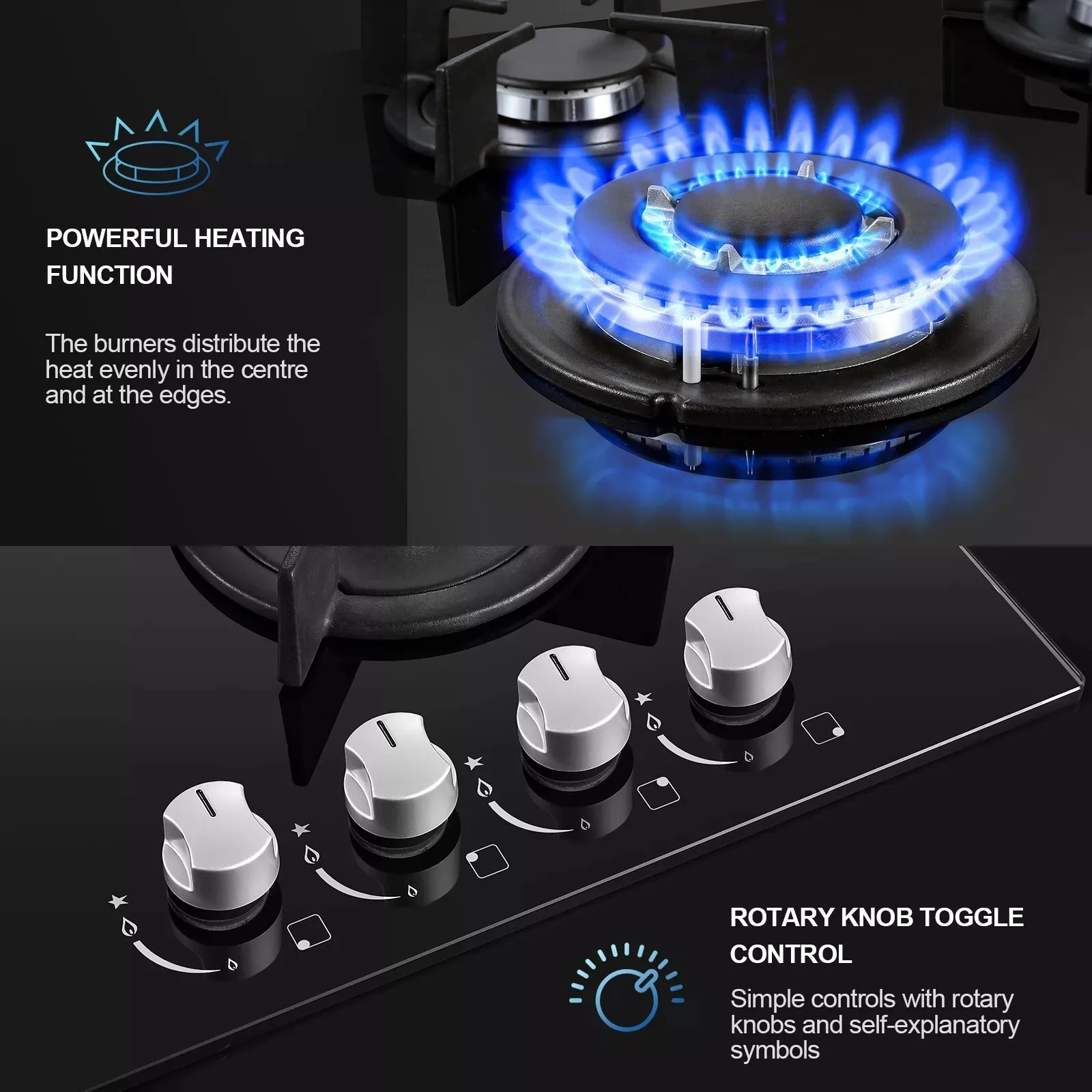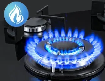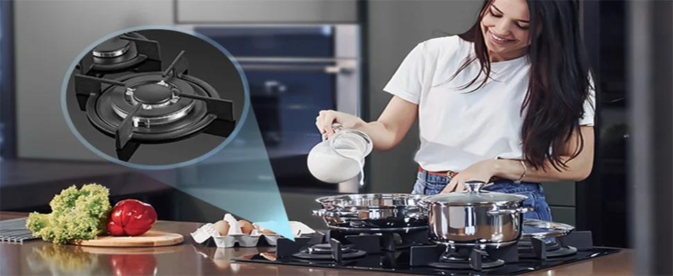 Each burner is equipped with an ignition safety device that stops the gas flow when the flame goes out to prevent gas leaks.