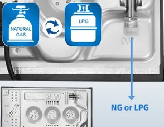 The gas hob can be converted from natural gas to LPG gas to suit your different needs.