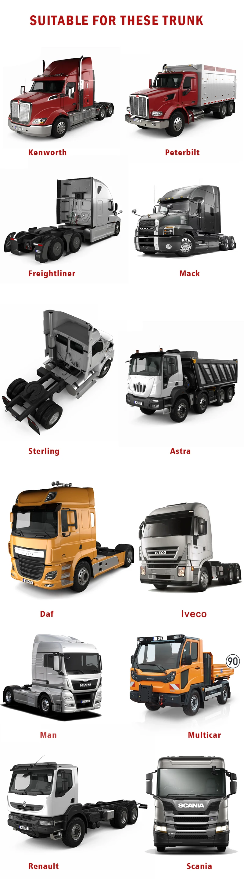 - Trunk: KENWORTH,PETERBILT,FREIGHTLINER,MACK,STERLING,Astra,DAF,IVECO,MAN,MULTICAR,Renault,SCANIA