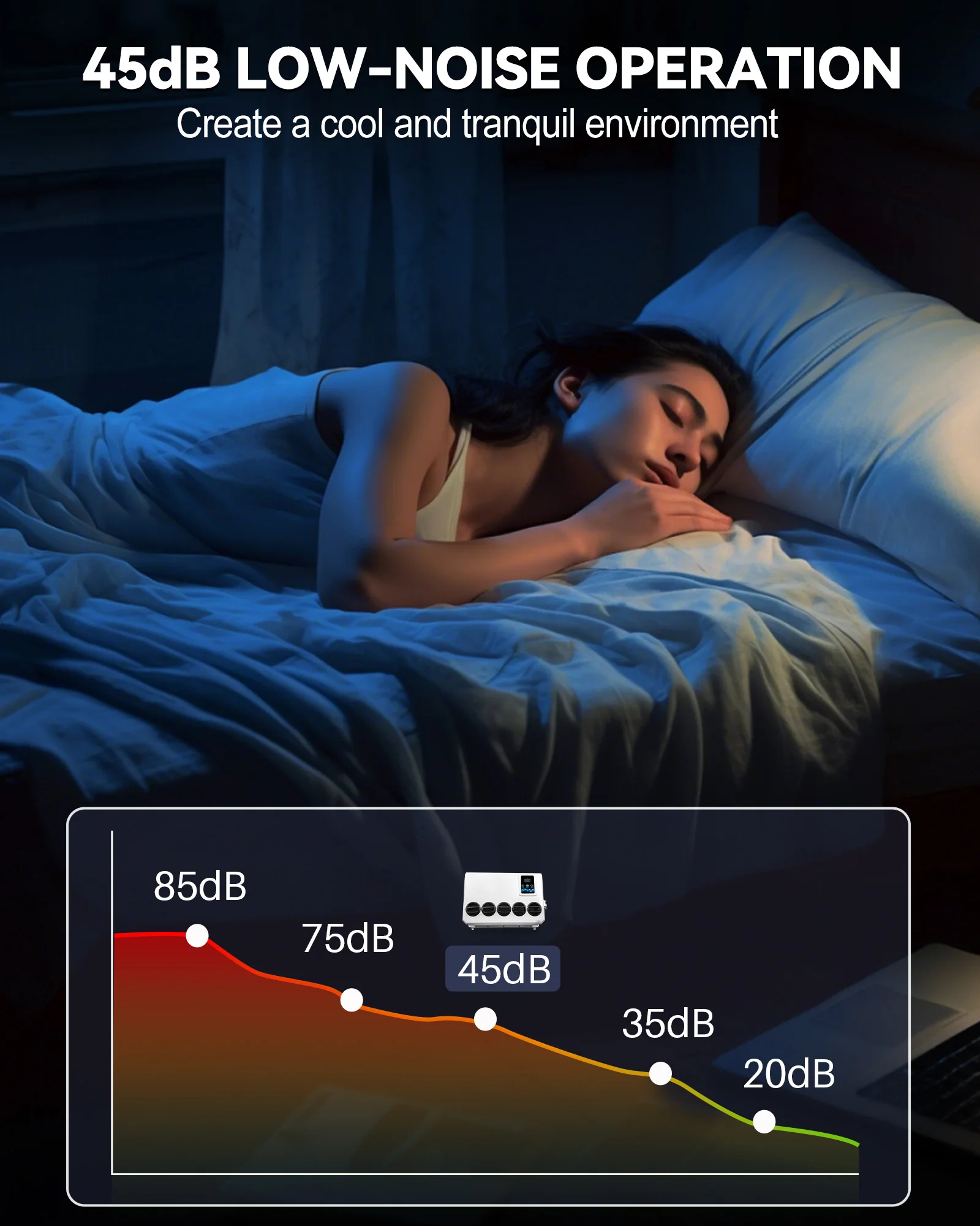 8. Digital frequency conversion control, more efficient and more energy saving. Use energy saving mode when you sleep at night,It can run continuously 6 to 8 hours. Use super mode in hottest hours, cooling rapidly and stronger air supply.